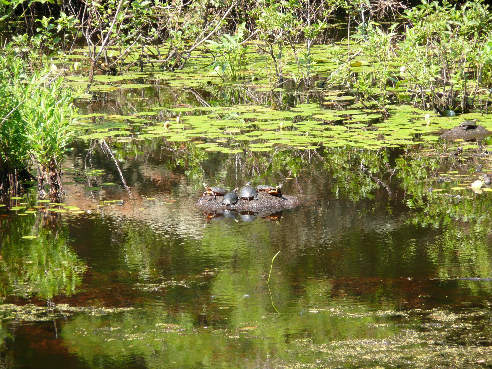 I'm doing a pet portrait and I need some help finding a good photo reference of a pond. See the photo (attached). I need to make the kiddie pool be a pond (maybe with water lilies) instead. Where the kitties paws are resting would be grass, then dirt/rock down to the edge of the water. The photo is black and white, but the drawing will be in color, so I'd need color photos. Preferably the bigger the better as this is going to be a large drawing so I need lots of detail to look at. Also if anyone has a photo of a cat crouching in a similar position that would help too. Thanks!