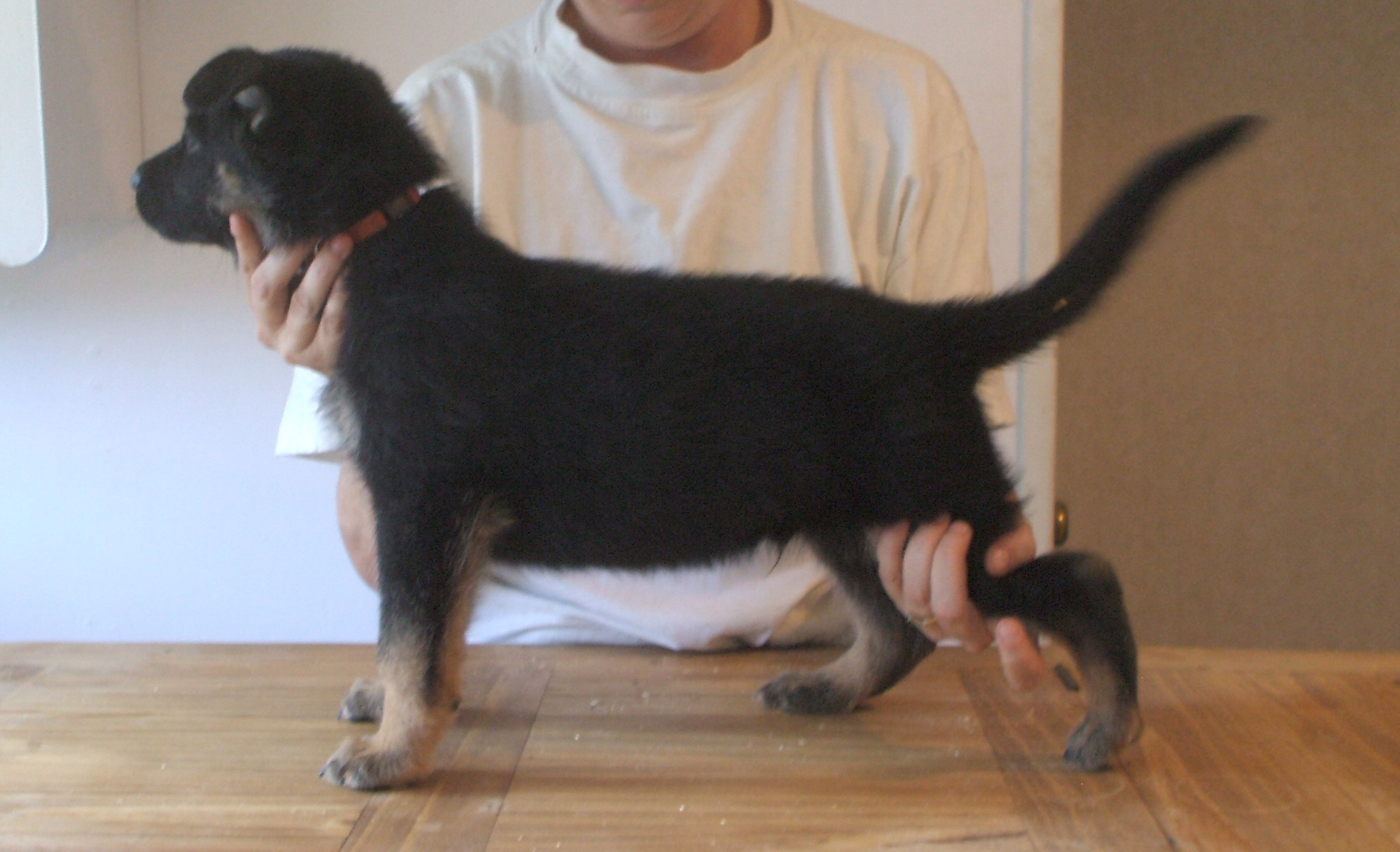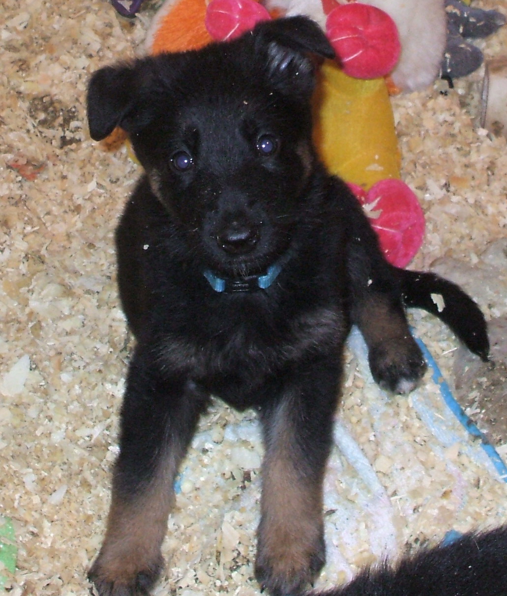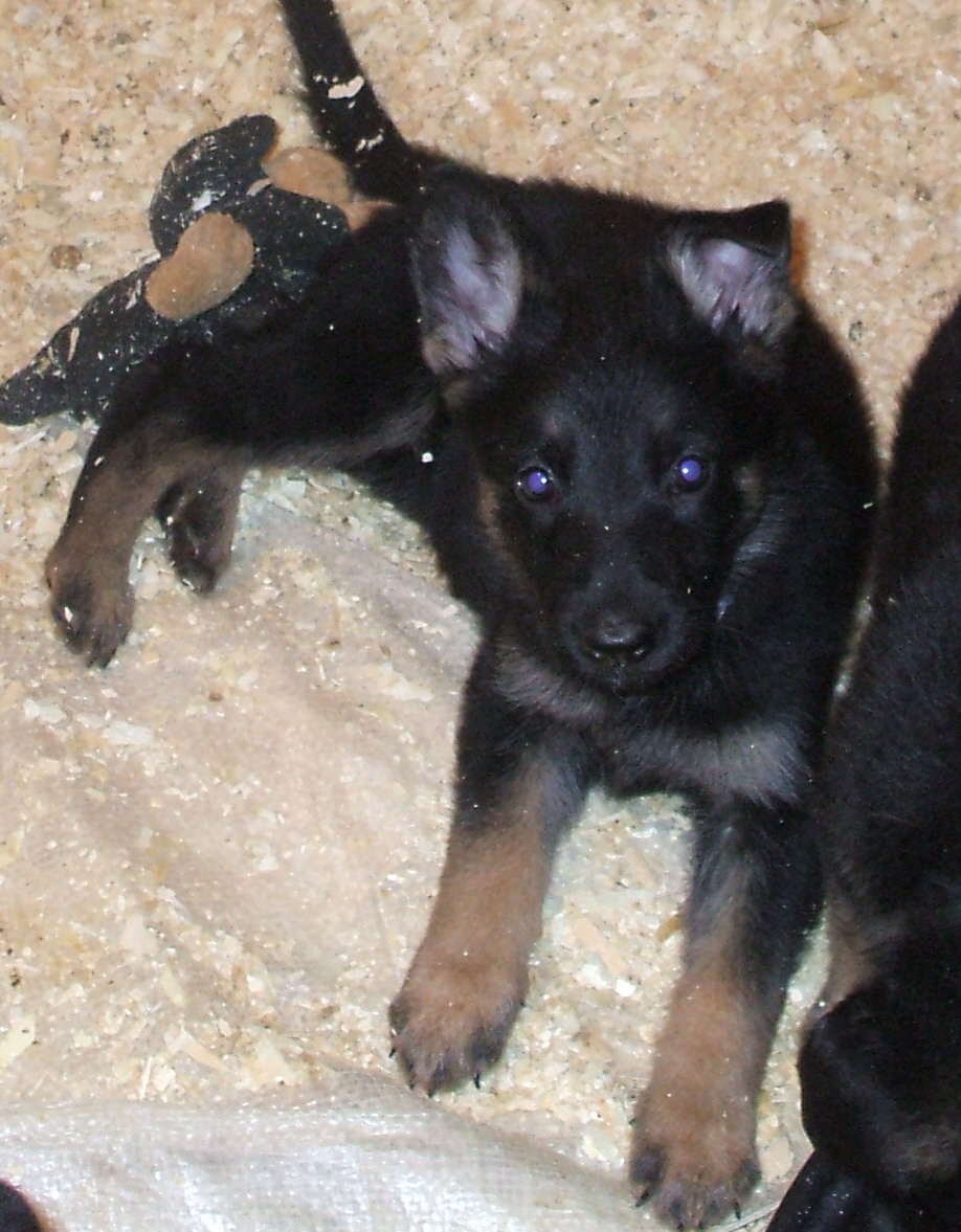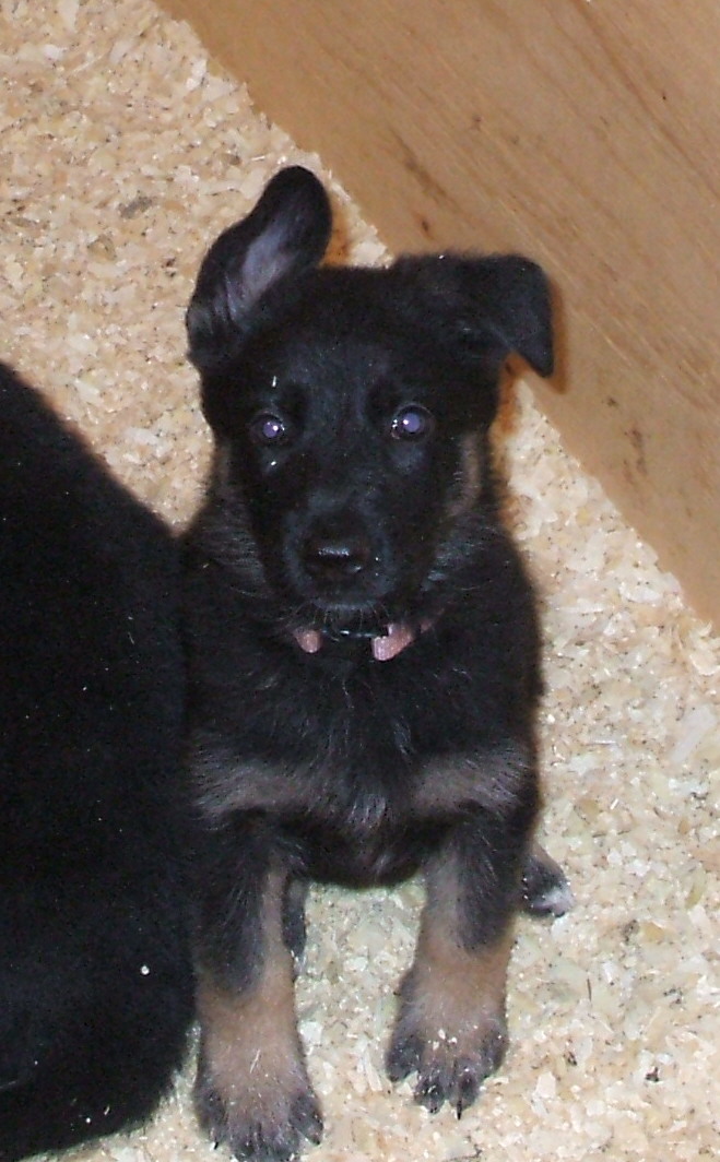 What great looking puppies. I love baby shepherds at 6 weeks when the ears start standing. Looks like they will have nice strong ears, most are almost up.They are really cute, I looked at the link to your pictures, what a lovely pair of dogs. Do you own both? I love the pink flowery border, course pink is my favourite colour. Is this your first litter?