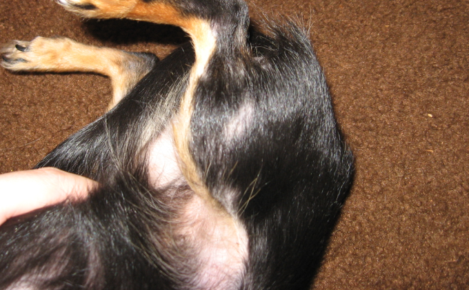 I just noticed this a couple of days ago. Spanky has started to lose fur all over her back legs, her tail, the areas surronding her butt and girls parts, and stomach. I am going to assume, for now, that this will happen all over. She is also a regular scratcher.