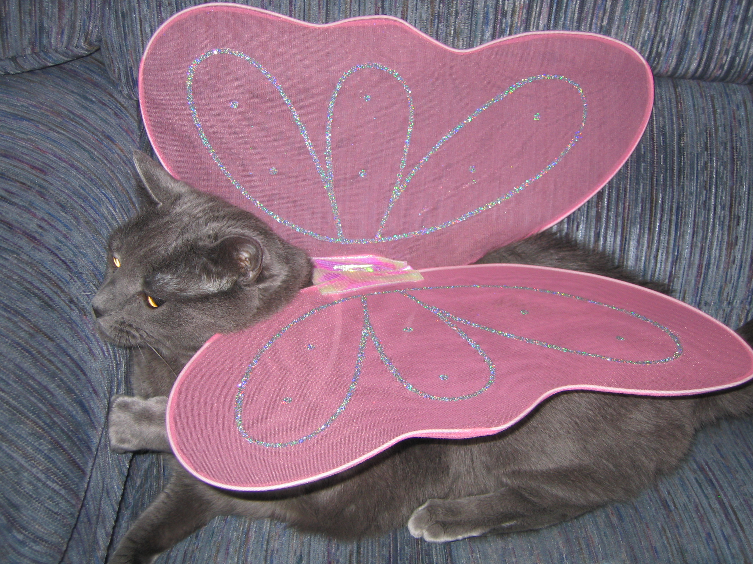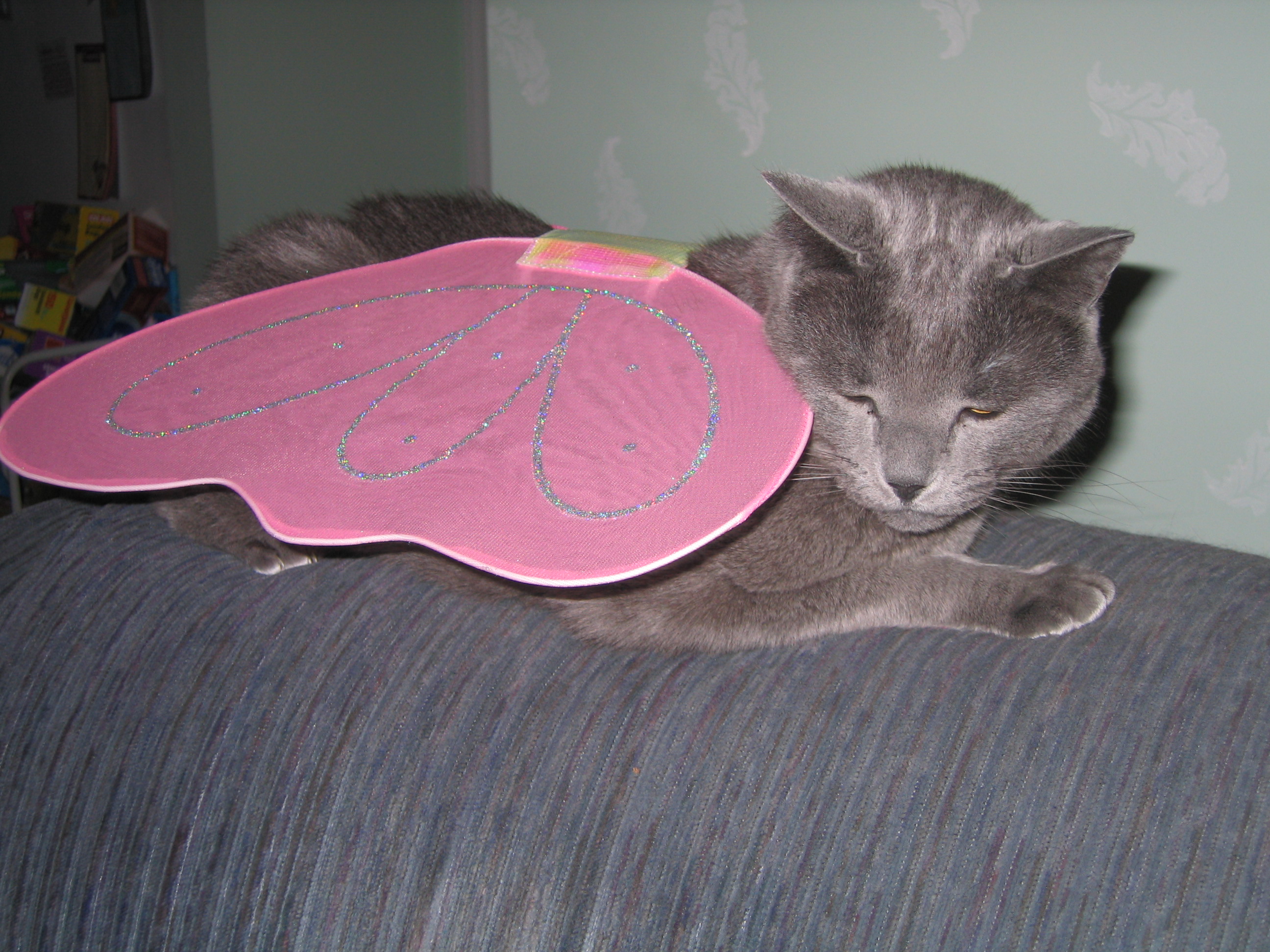 I hope you told her that those wings compliment her color! (But by the look on her face, I don't think she would really care.)