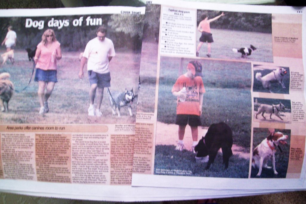Well not exactlly the newspaper, but the Friday afternoon inset about what is going on this weekend.There is an article on dog parks, and last weekend, Ginger and Taz were photographed while they were playing at the local park. Unfortunately it isn't online so I can't link it here. But I just wanted to brag a little any way. Now I am bugging all of my co-workers for their copies of the What's Happening.