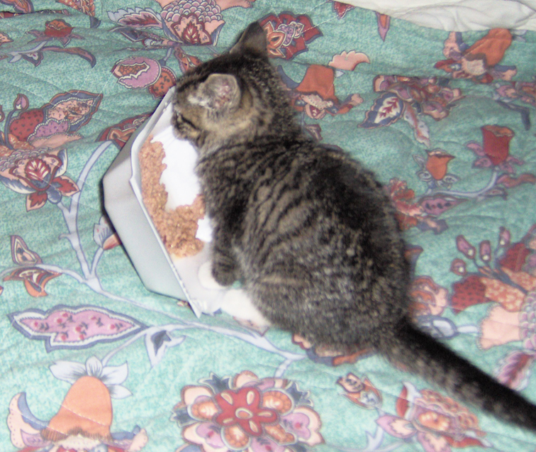 The only problem we have found is since we couldn't find any kitten food we had to give him regular. Not a great idea when you are going to be in a confined area. Most of the trip home was with the windows open.