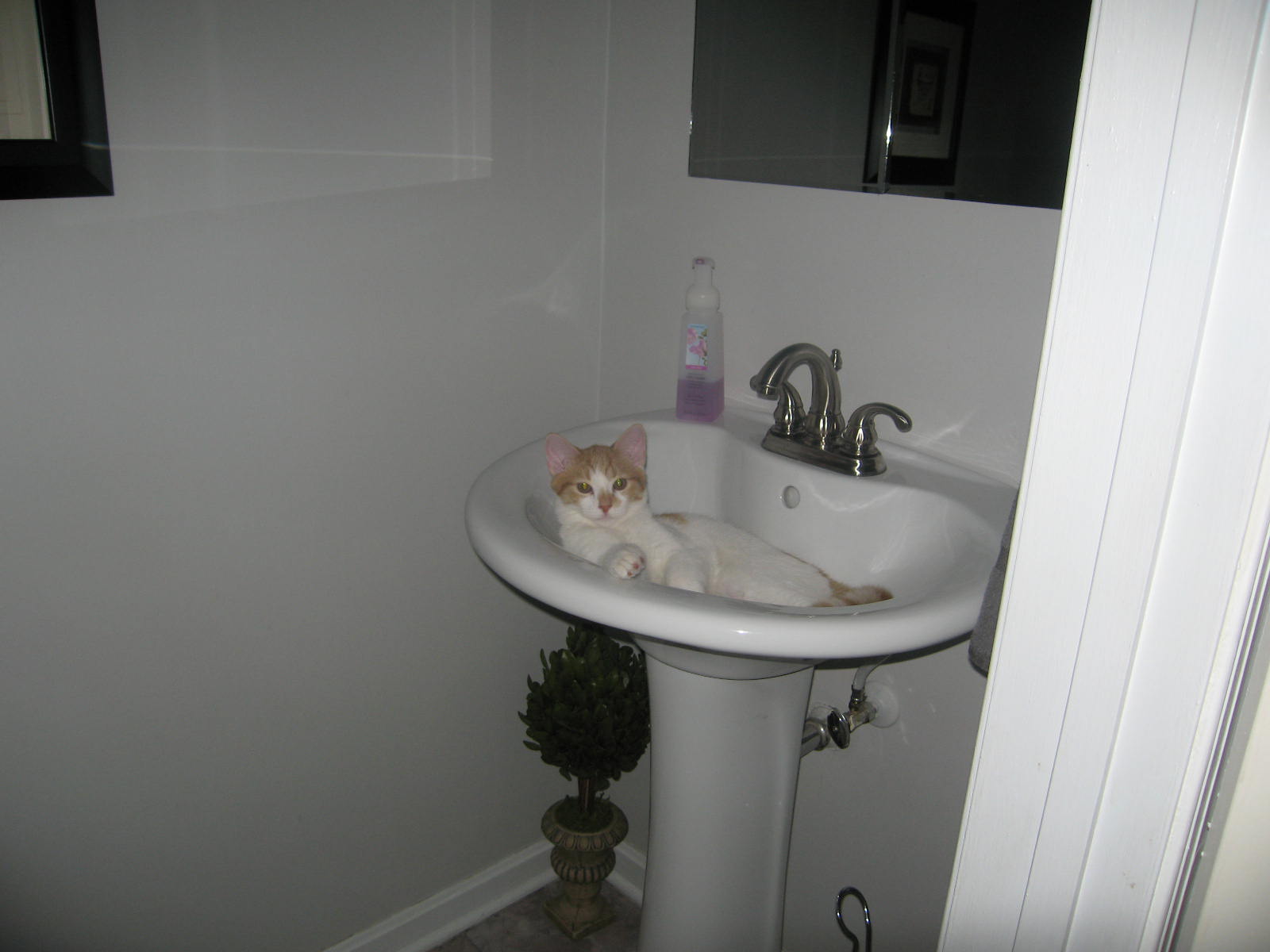 Owen in the sink makes me miss my RB Peeka. The sink was her bed of choice. What a cute bunch of kitty kats you have! They look quite ornery, too. Don't ya love it?