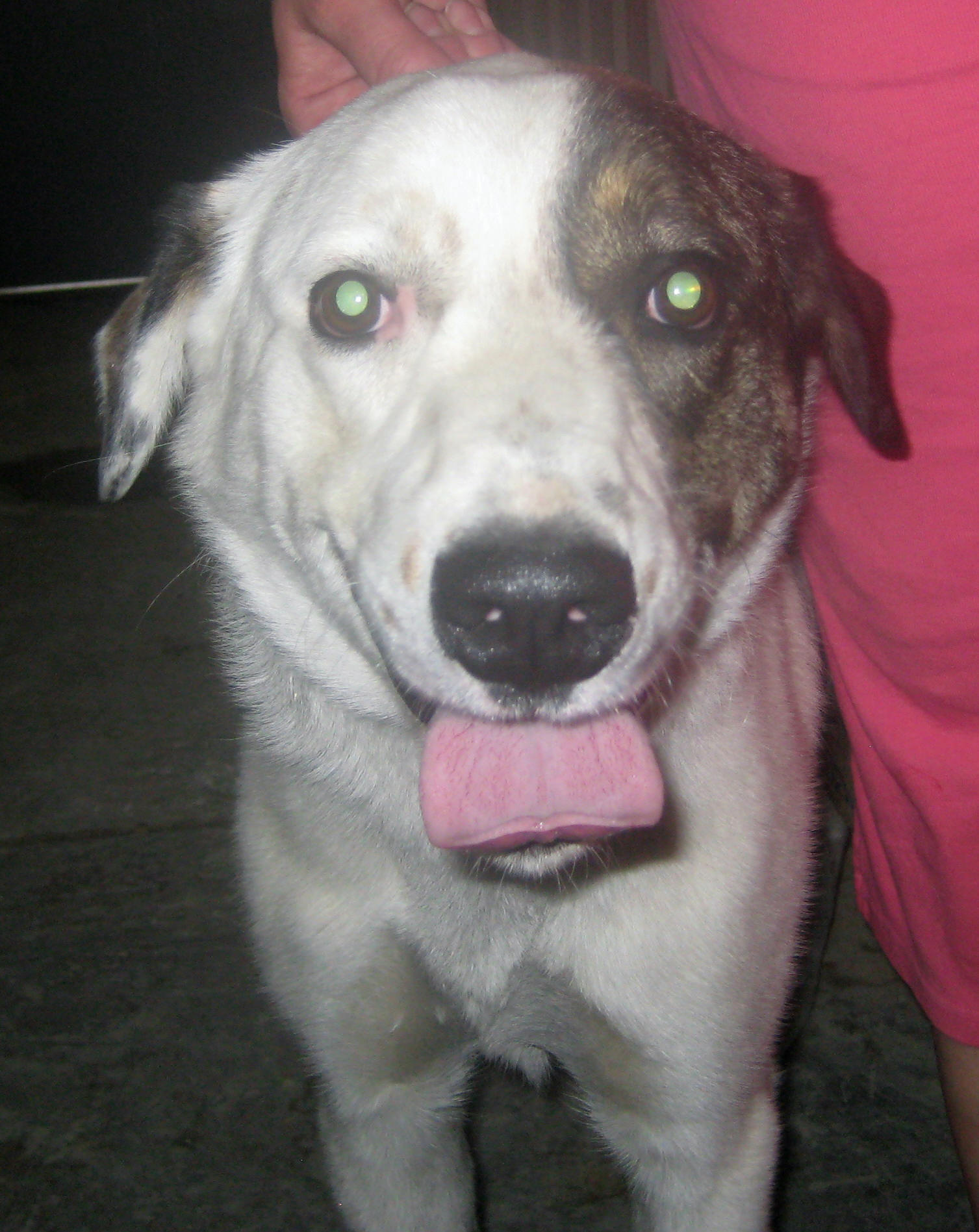 I was only joking.. hehe.. but if he does have heeler it might be red.. but I also noticed the brindle... perhaps a boxer/lab/heeler... although he doesn´t has much merling...