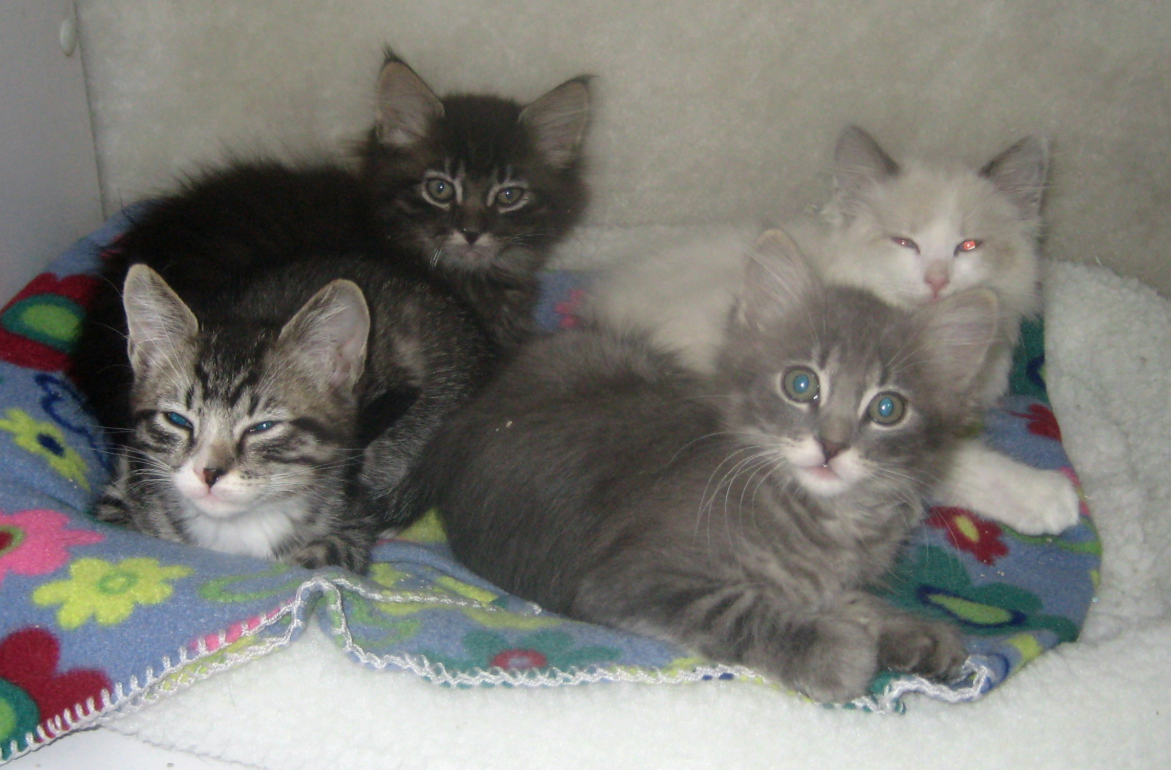 I think they are about eleven weeks old. They will get homes quickly. Kittens always do. It's always the older cats and dogs that have more trouble.