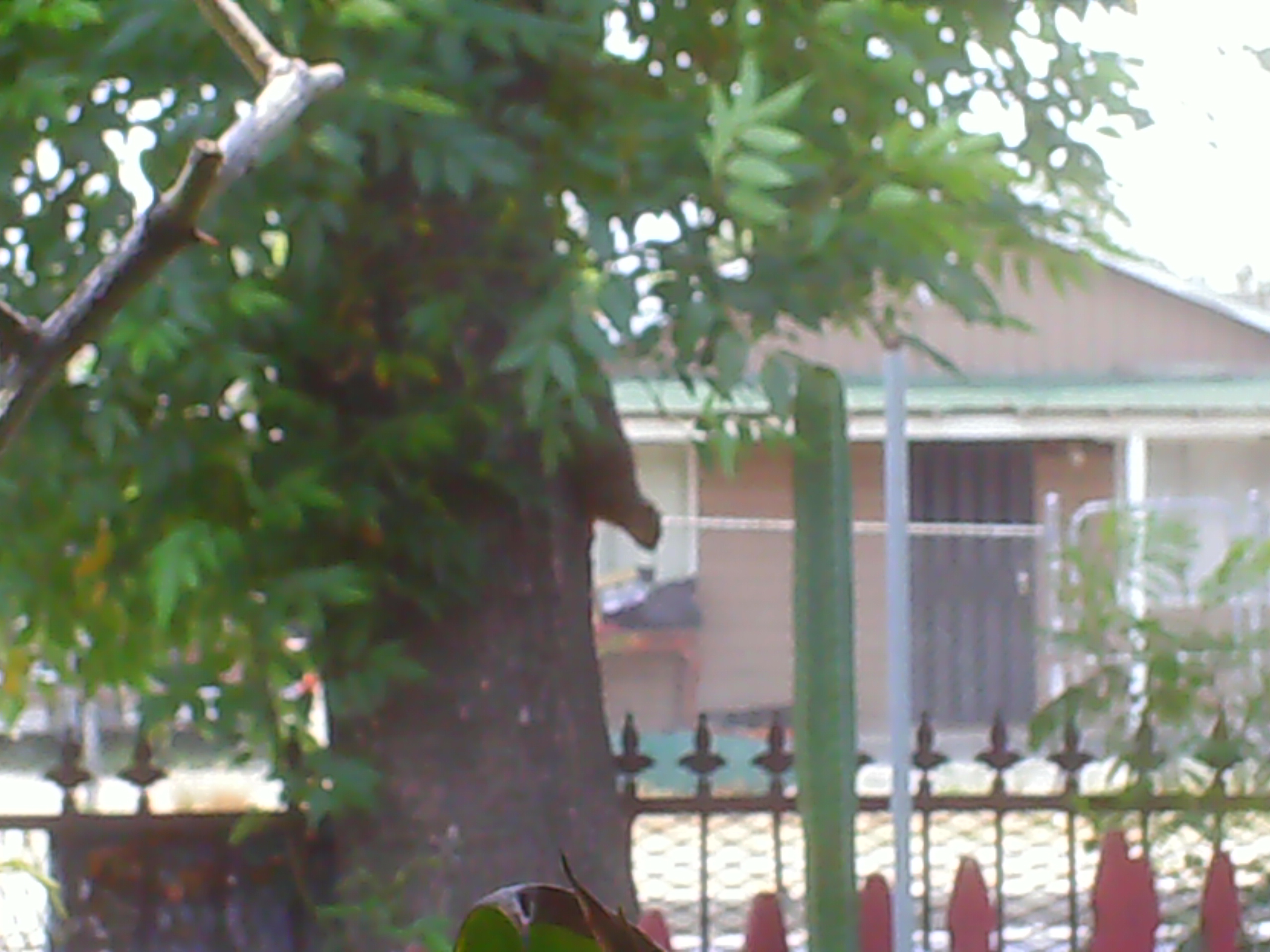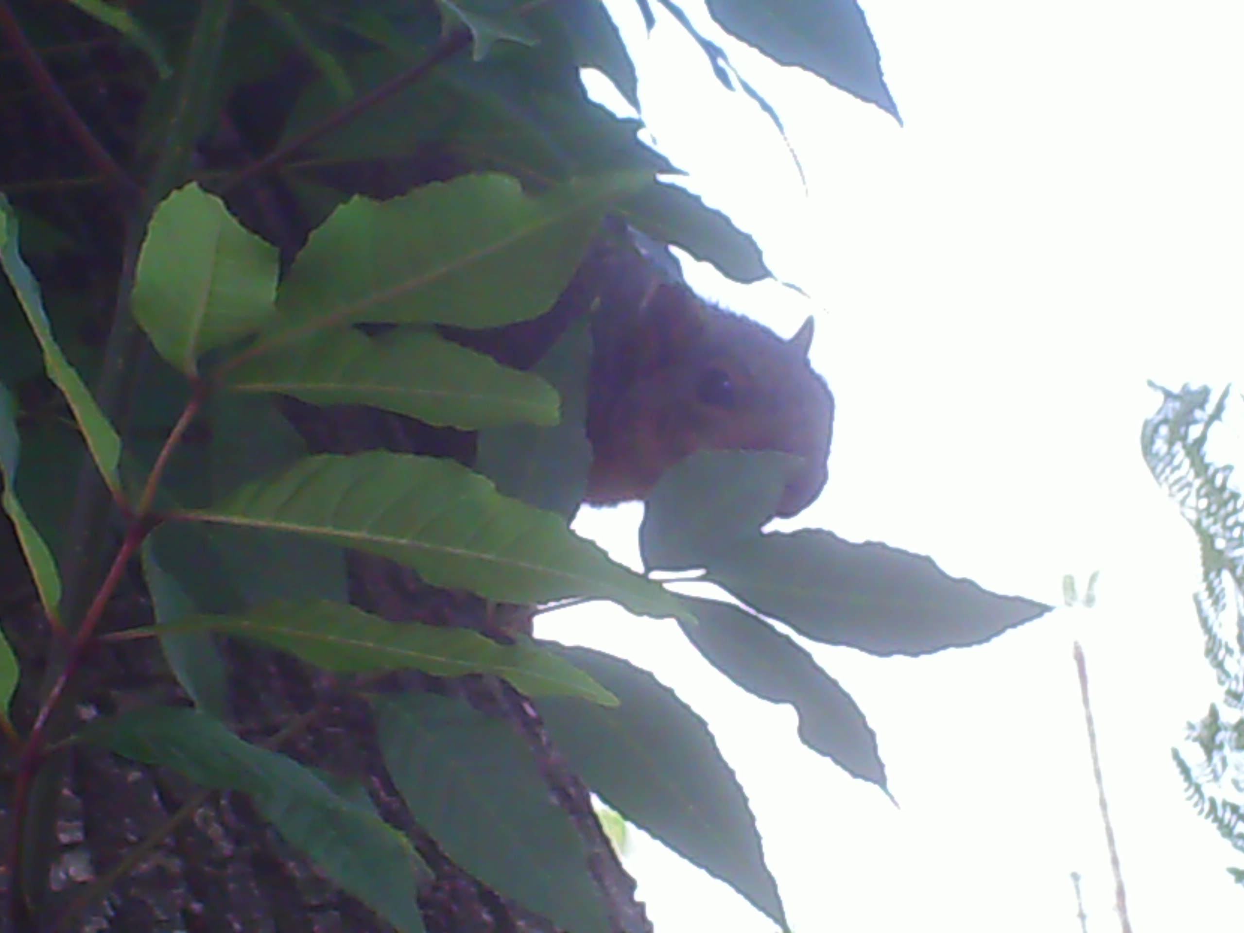 We looked at each other for about two minutes, me taking pictures and it, very quiet. I guess it was thnking me for scaring off the birds and dogs that were bothering him. After graciously allowing me to snap a few, he climbed off into the greenery!