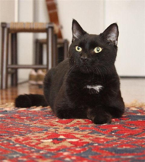 My name is Sylvester and I'm a stunning and handsome, black, declawed, polydactyl boy. I am 6 years old, neutered, tested (neg), vaccinated and microchiped. I was recently left at a high kill city shelter by my owner who I loved very much. I became emotionally traumatized by the loss of my family and being in a high kill shelter with all the noise and commotion. My vet even said that I was one of the most emotionally traumatized kitties he has ever seen. I told my vet that I didn't know how not to be scared and traumatized and that I needed help. He recommended to my rescuer and foster mommy that I start on medication right away to help me with my trauma as I was afraid of people, noise, my cage, my vet, everything under the sun. It wasn't fun for me as I was upset all the time. I wish I could tell my rescuer and foster mommy what other things have traumatized me but for them it will be a painful secret that remains only within me. Now that I have my new medicine which is tuna flavor, YUMMMYYYY, I am doing much better. I even come out and lay around, purr, even let you rub my belly sometimes. I really like to chase the birdies that I see when I sit on my window perch. I have made lots of strides but I need a forever Mommy or Daddy who will help me continue to grow and flourish. My medicine is what is helping me and I will need to stay on that. My vet told me no worries as it's inexpensive and tastes yummy. Wow my vet is