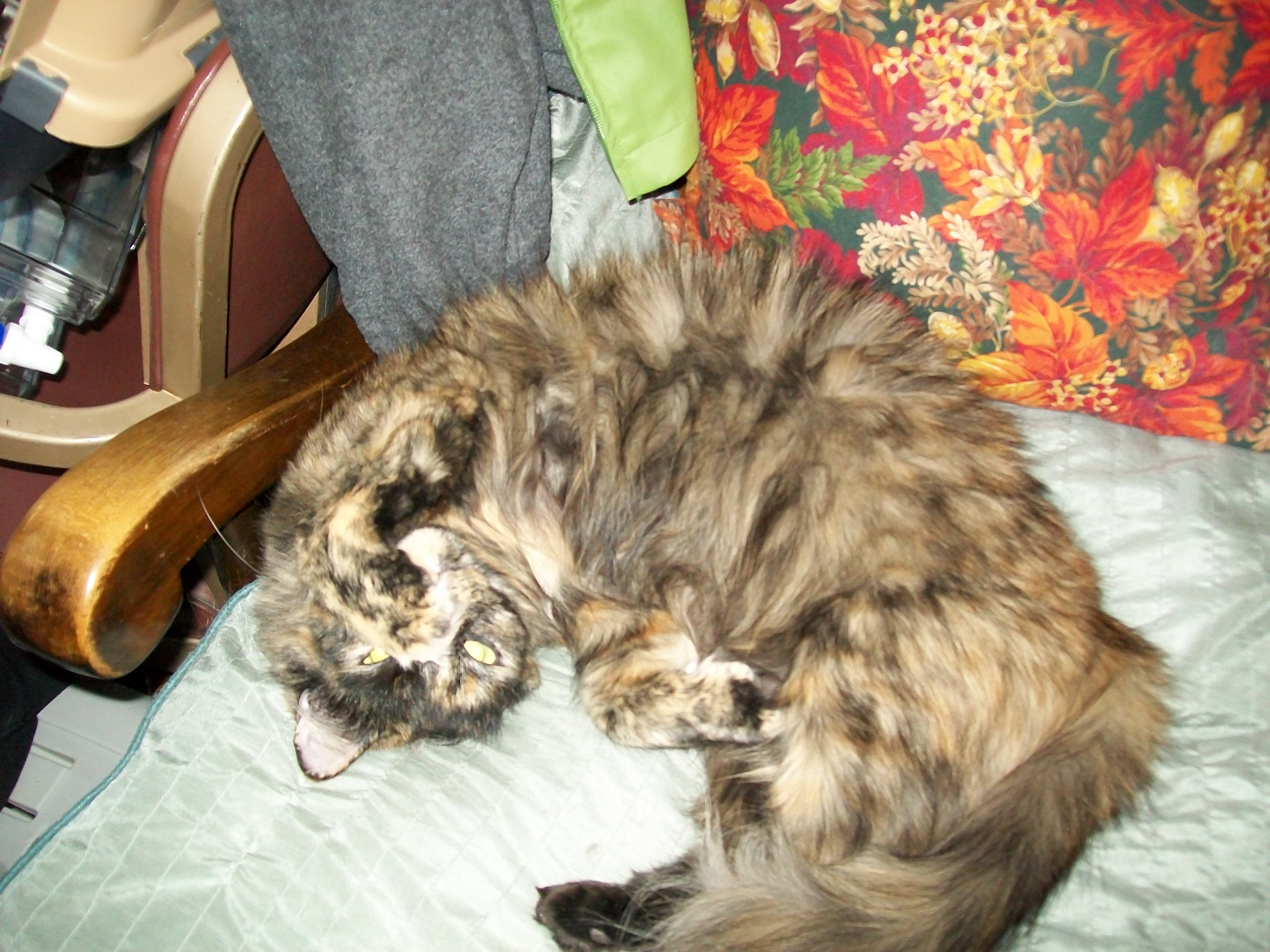 As for Fiona (long hair tortie) tonight I noticed her one eye had some clear discharge from it and I decided to look at it a bit closer and her third eye lid is red and swollen. I have some eye stuff here but I'm probably going to have to call the vets in the morning and my guess is they will want to see her because they don't usually like to just treat an eye thing over the phone just in case.