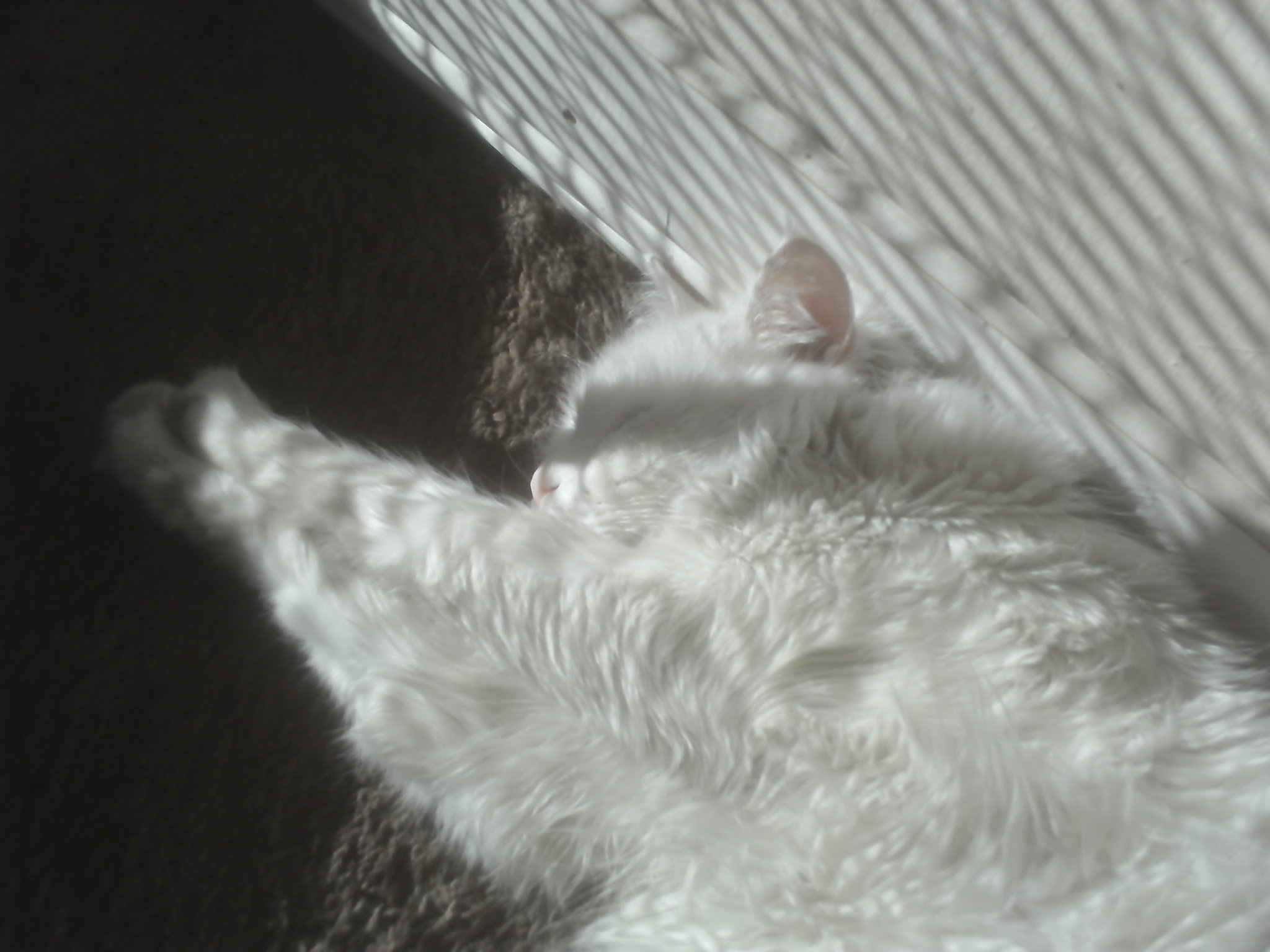 Now that's a contented kitty kat! My RB Peeka would follow the sunrays all day until they disappeared, however, w/the weather that we're having, it would take more than a couple of hundred kitty kats to keep us warm. We'd need at least a thousand!