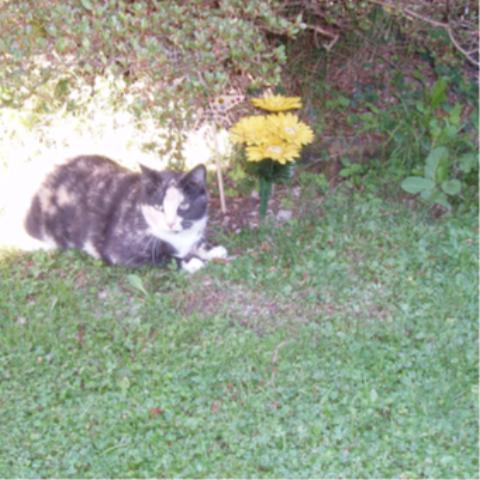 There is one of Nikki sitting on my Ash's grave, she never sits there, just took to it after he passed away, strange what kitties do some times, always have a lot of pics of Nikki as she is so photogenic, don't you all think? Enjoy.