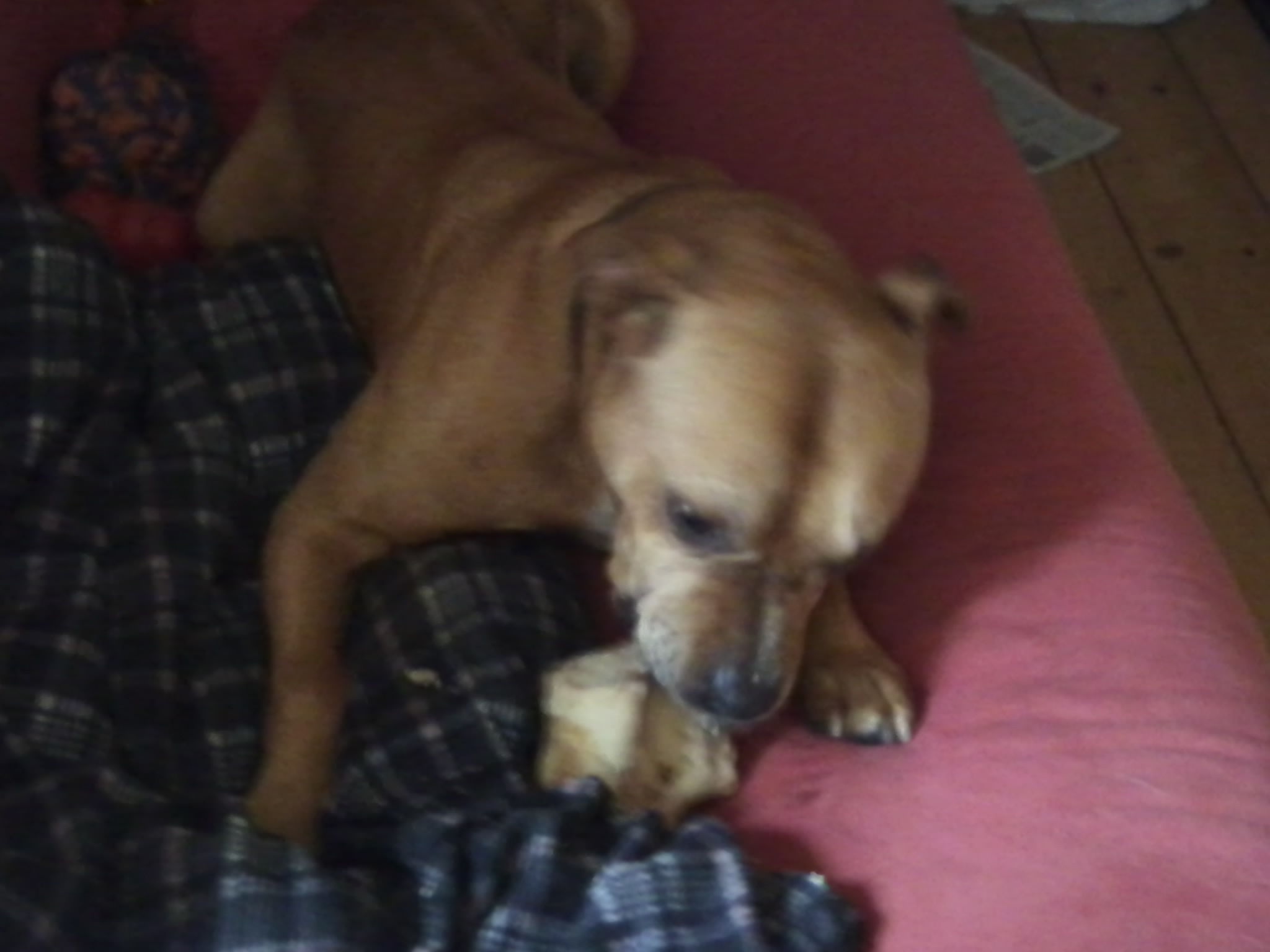 Blanket, pillow, pet bed, bone -- Arthur, you got it made!![]()