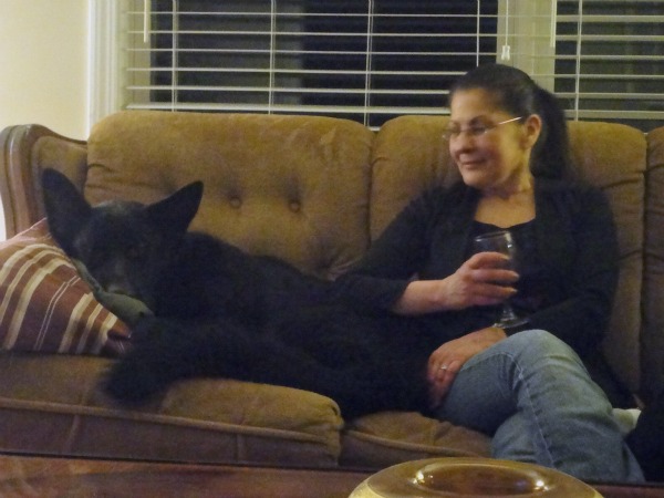 Taffy can adjust to anywhere. She has taken over the couches at the new house, and will let out a "Ruff!" if any other dogs get near her spot. But she is so happy she goes up on her back, all four legs splayed! She has also gained the little amount of weight that she needed to gain.