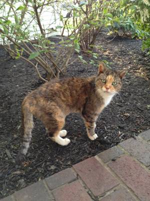 These are pictures of 2 of the 4 stray cats a woman (Patricia) has been feeding in South Plainfield. She says they are friendly to her. She said the calico is about 8 yrs old and a nice cat and spayed. the male cat is not altered. He is shy, looks terrible and she thought just an antibiotic would help(?). He could have any number of issues.