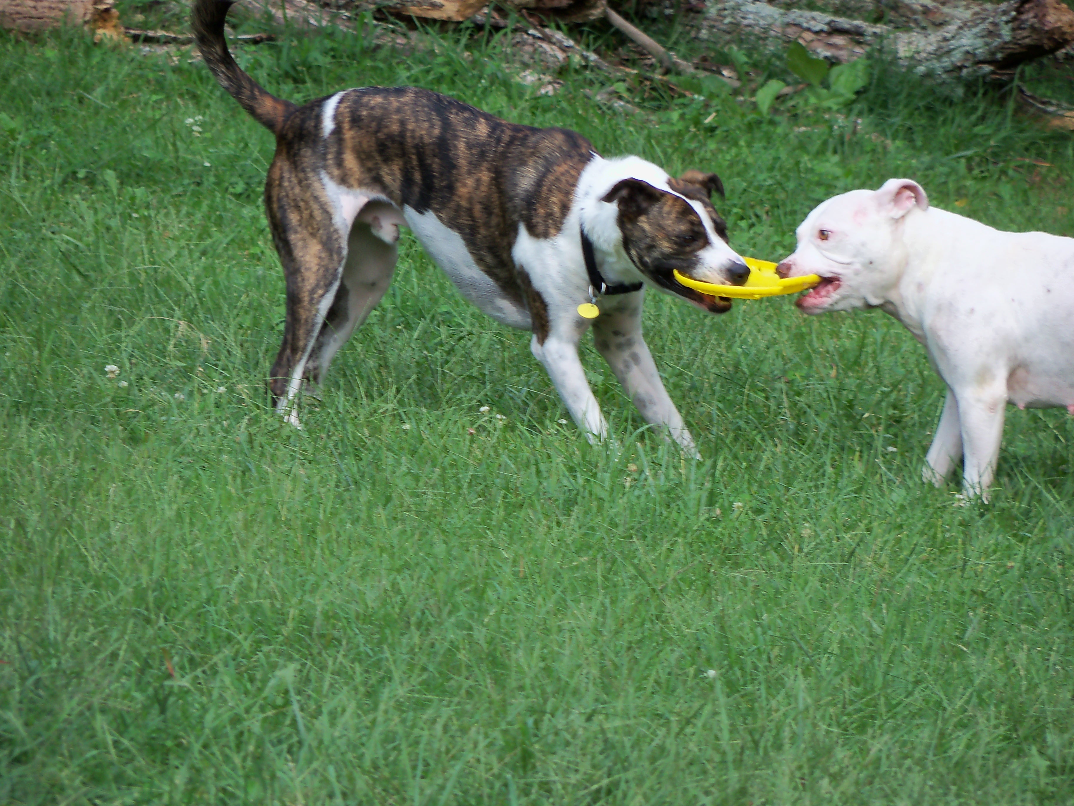 Hey everyone was out with Braggo and Hadley the pit we are babysitting for our neice and took some pics of them playing man they play really rough though I just kind of stay out of the way. Well hope everyone likes them.