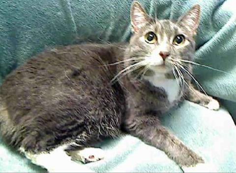 This is Buddy. He is a gray & white triggered boy. Buddy was given up by his owner because his owner was moving and could not take. Buddy is a neutered male 3 years old and he is 4 paw declawed!!!!!!!!