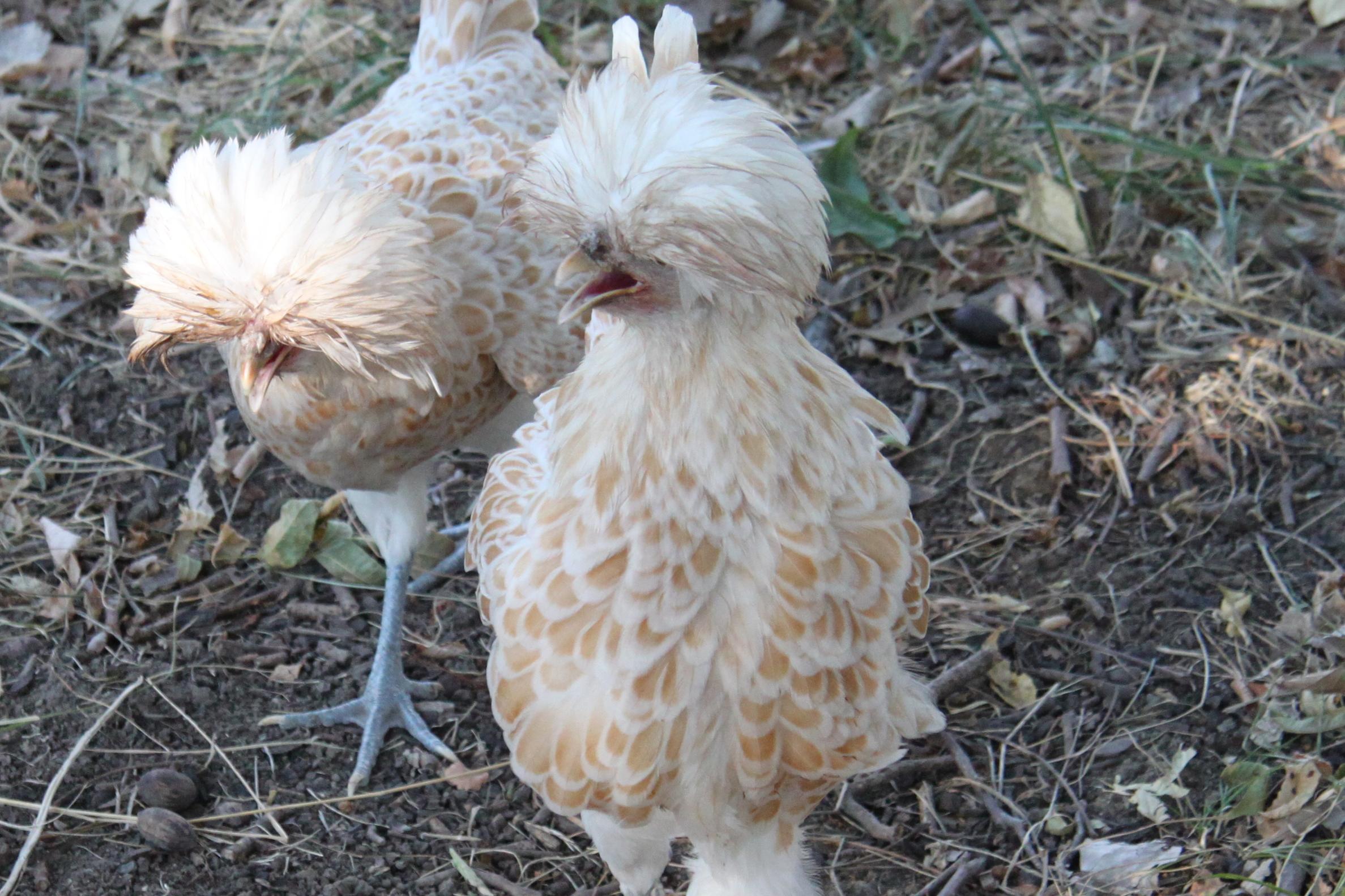 Yeah, we hear Phyllis Diller comments a lot when we first introduce folks to our chickens. Here's Chicky Gaga and Bubbles.