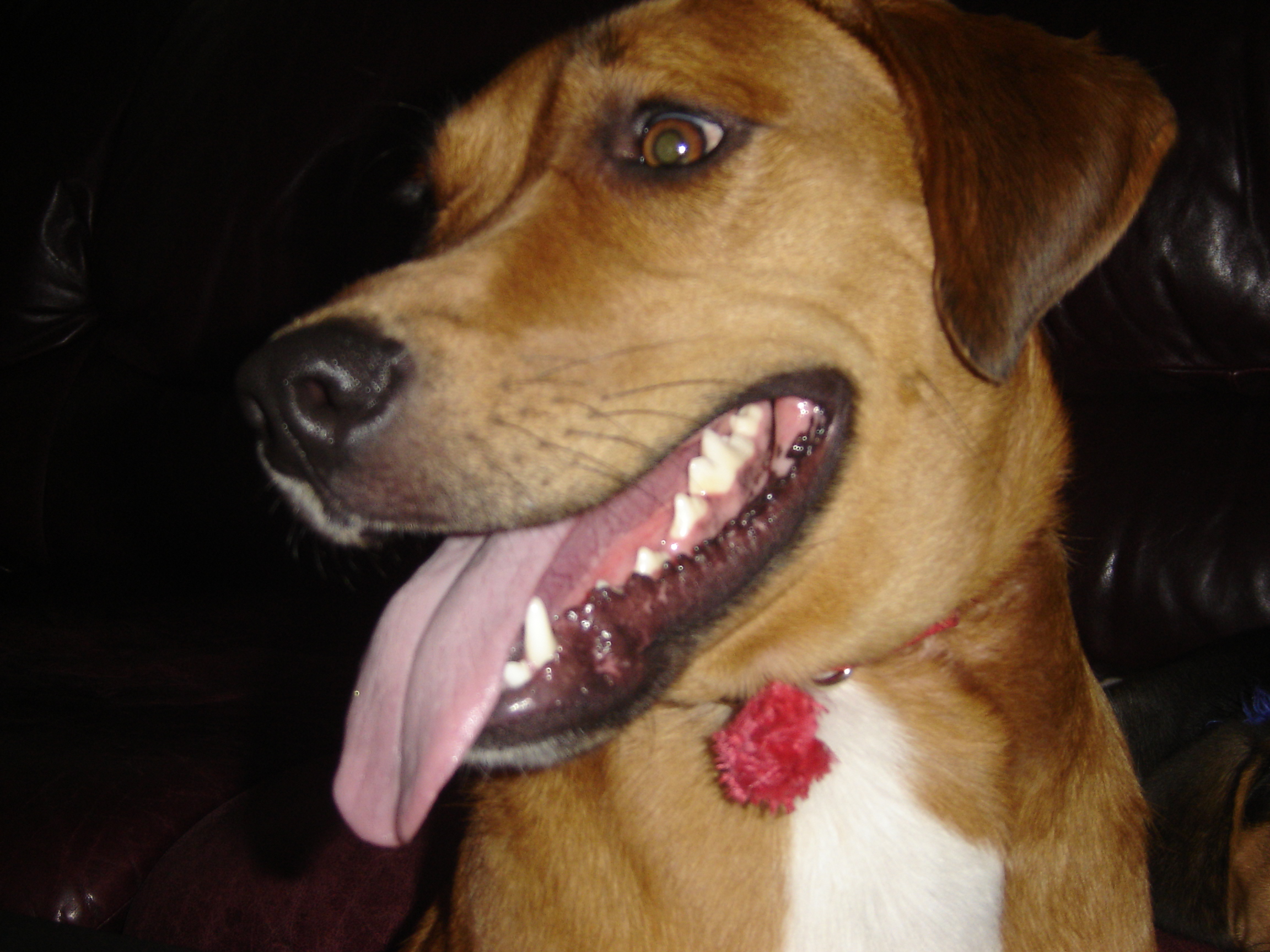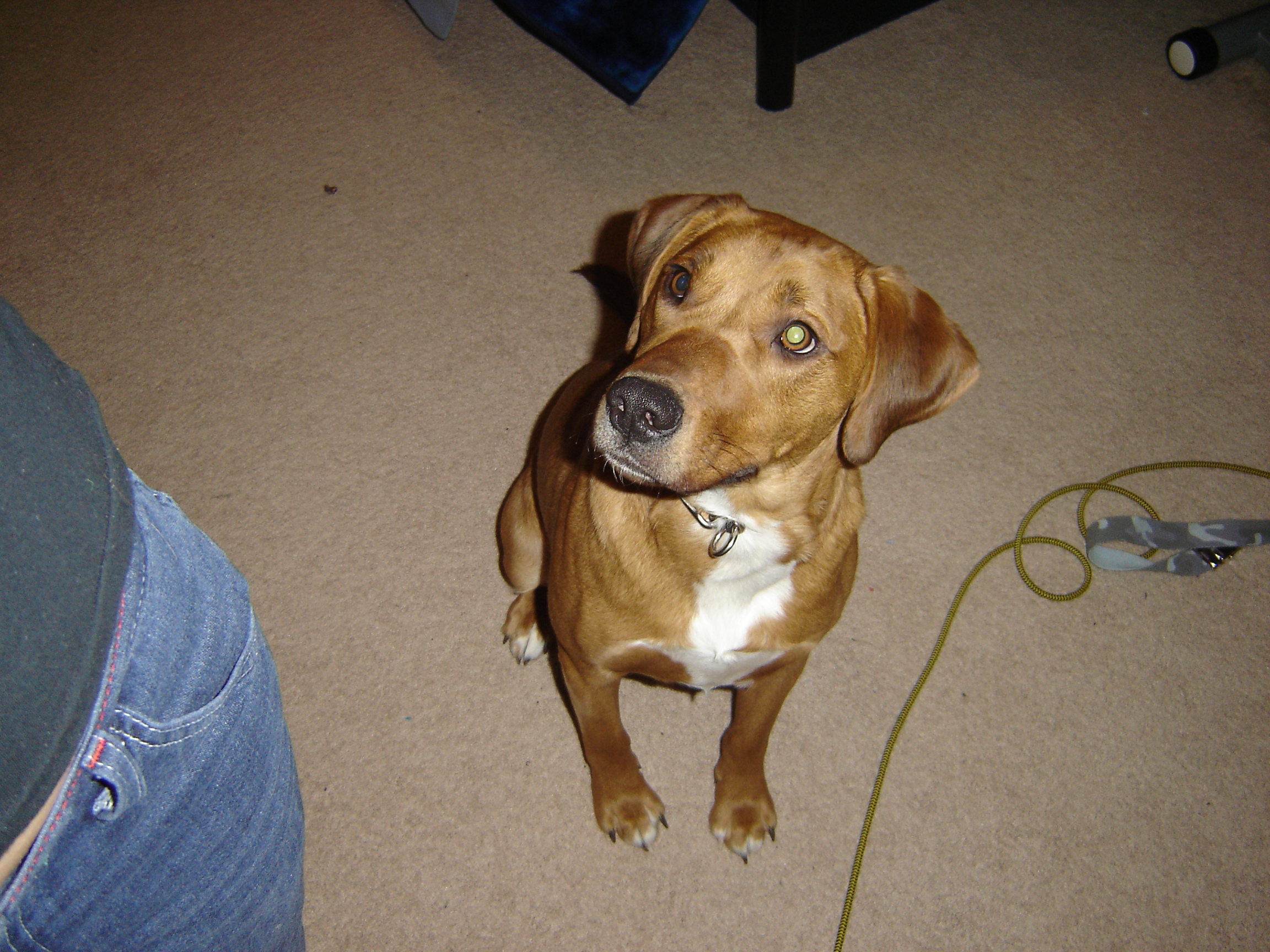 Not sure what he is exactly. For sure a lab mix, but not with what or what kind of lab even. Some see a NS duck-tolling Reviever in him, though they usually have longer coats. He's about 65 lbs, medium sized, quite muscular, real strong bite, great temperment though somewhat protective.