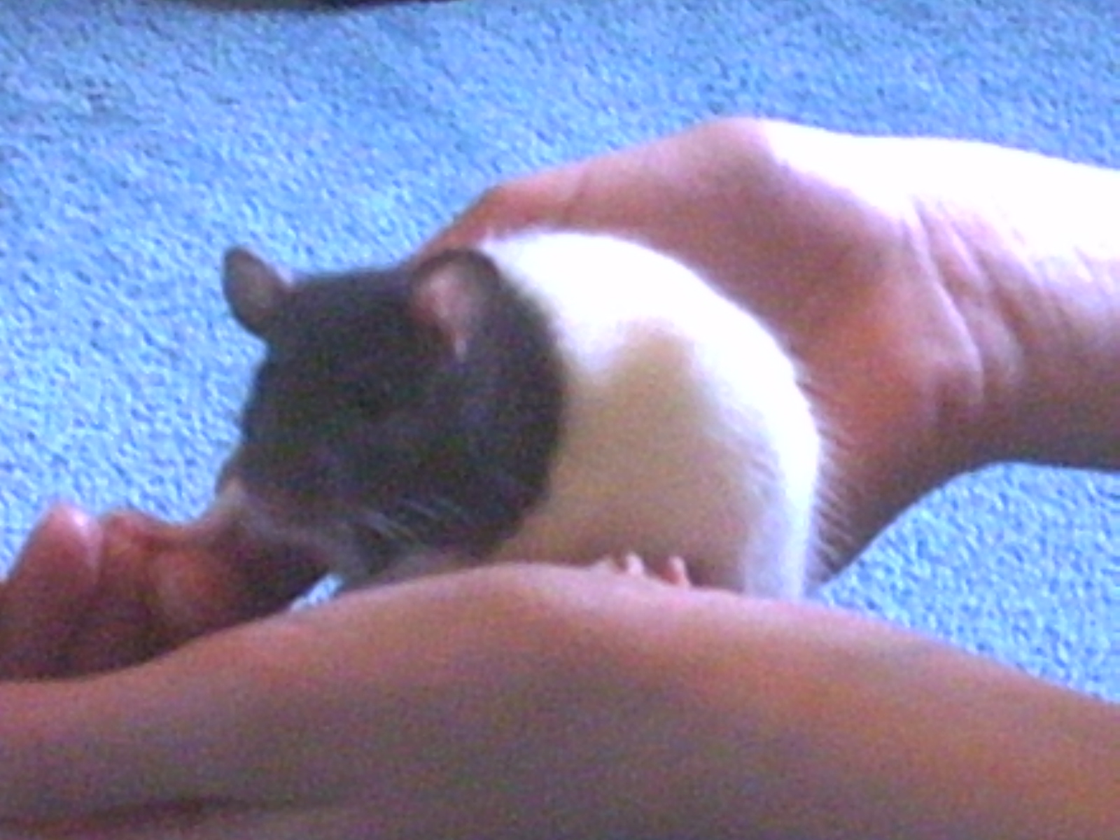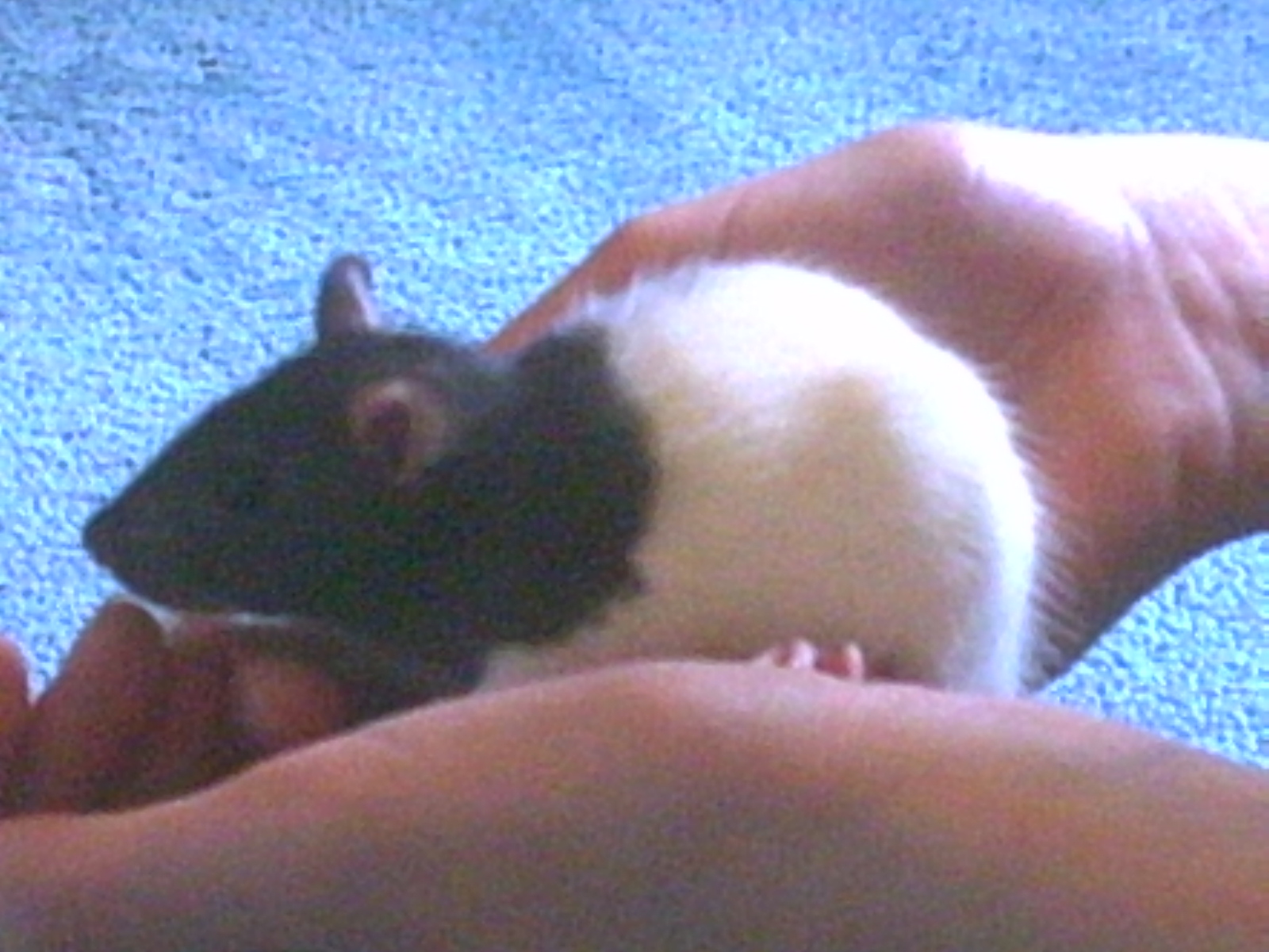 Here are some baby photos of my rat Tia Maria. Sorry they are a bit blurred our digital camera was running low on battery. Would she make you love black hoodies???![]()