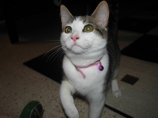 [B]My brother got a kitten today. She is 6 months old - we got her from Pets Mart where a local rescue keeps some of their cats. The name on her paper said "Ms. K" but my brother wants to change it. Some of the names that we came up with are in the poll.