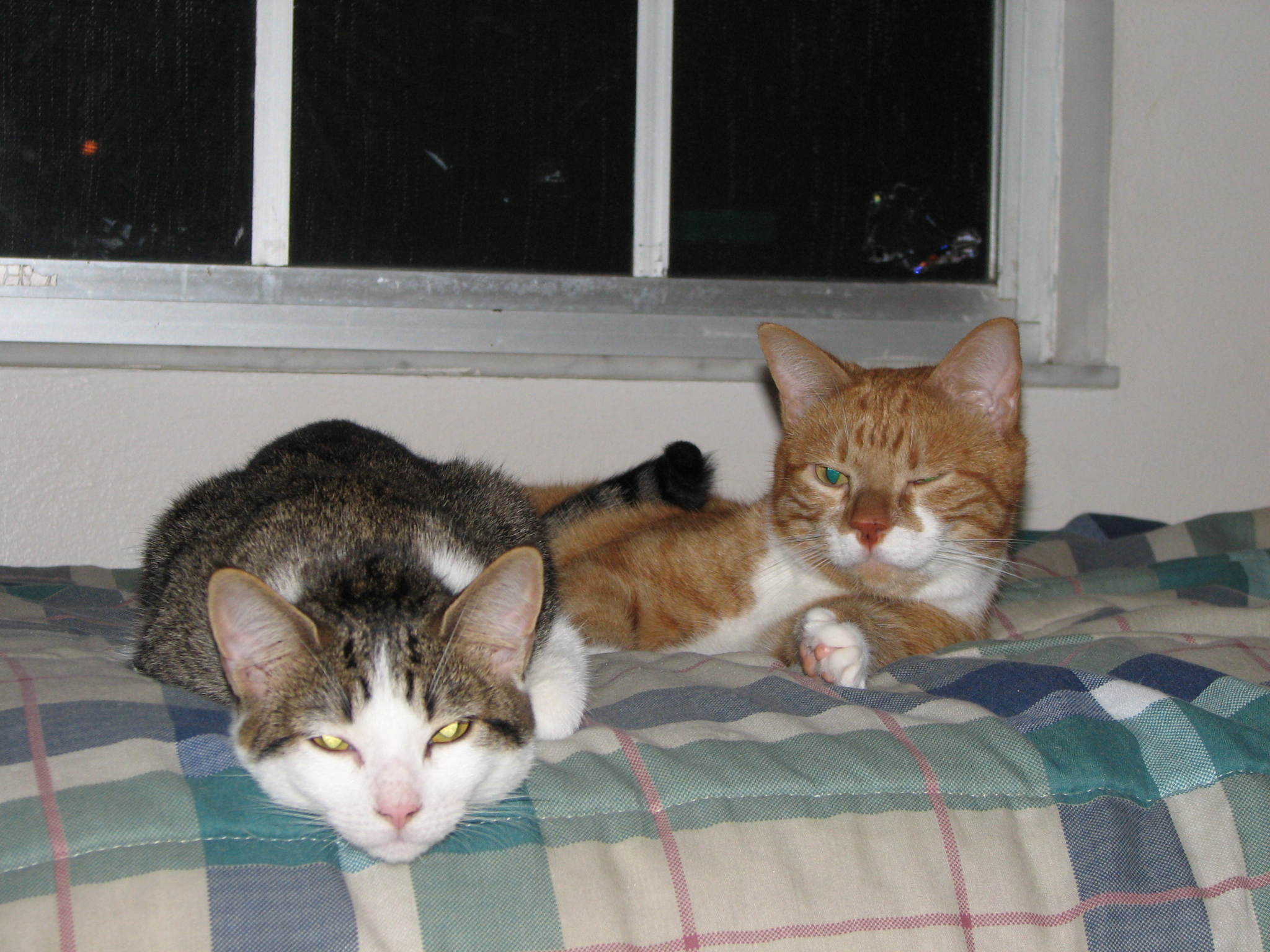 I caught Orion and Monte snuggling! The first picture is horrible quality but I didn't even bother to focus on them and snapped it before they moved. Orion does not like the be caught snuggling with Monte and as soon as he is, he moves.