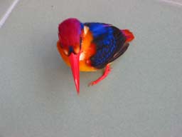 My sister and BIL just came back from a 3 weeks holiday in Thailand. One day, this bird came to visit and they snapped a few pictures. They have always loved birds, have several feeders in their garden - that might be the reason they now have the orangie visit too - yes, they are becoming very attached to that cat, admit it or not!![]()