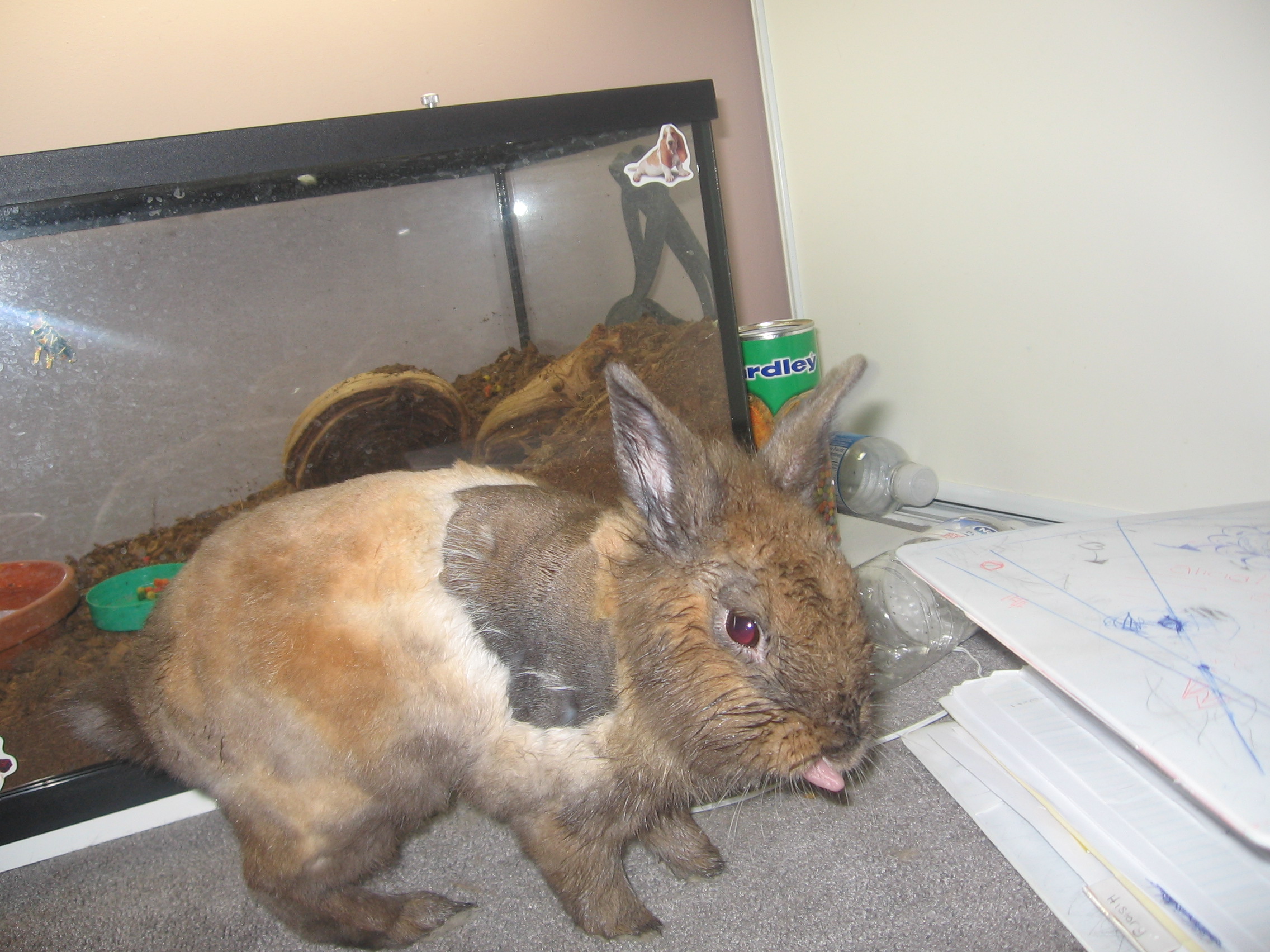 It's not parasites or anything. His fur is coming out in clumps, some say hes having a MAJOR molt others say it could be stress or something(these people are from my buny group)