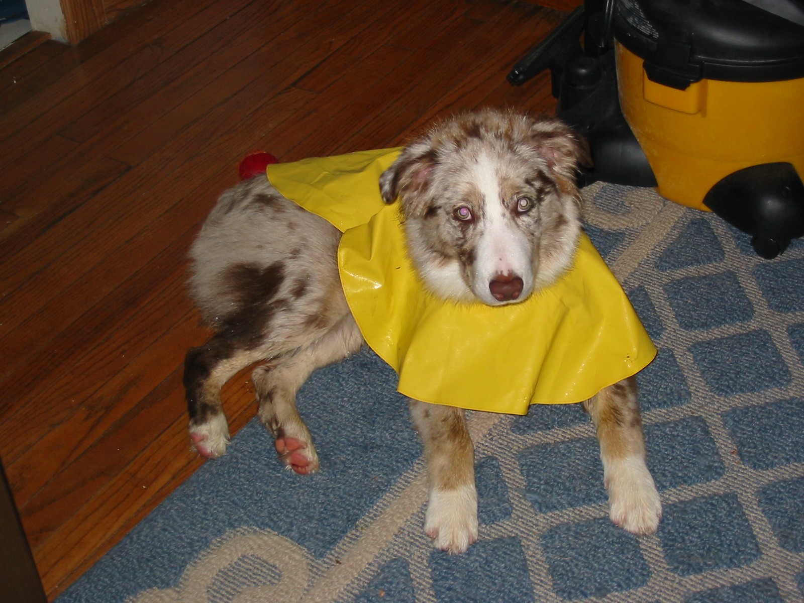 Well,thanks to the remains of Ernesto it has done nothing but rain here in NY since last evening. But Cochise and I weren't going to let that put a damper on our walks! Here are some pics of him in his new raincoat![]()