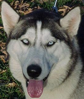 Male - 2 years - black and white, blue-white eyes, unaltered, answers to Shinzahn - Orange Rabies Tag, Pink name/number Tag