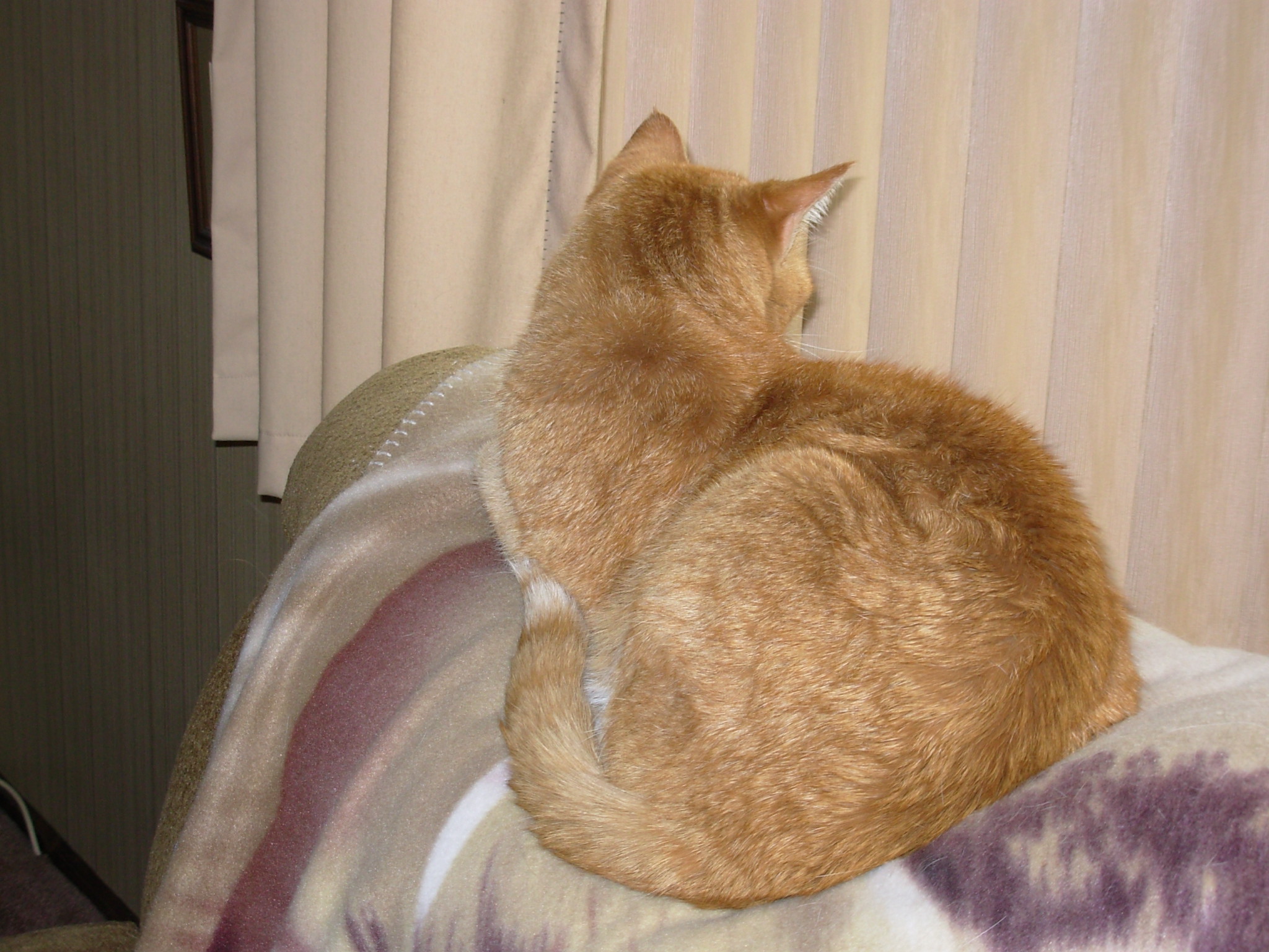 Trevor is parked at the window listening to, and watching, the bird who is building a nest above the window. There are lots of comings and goings at that window (a busybody kitty's dream).