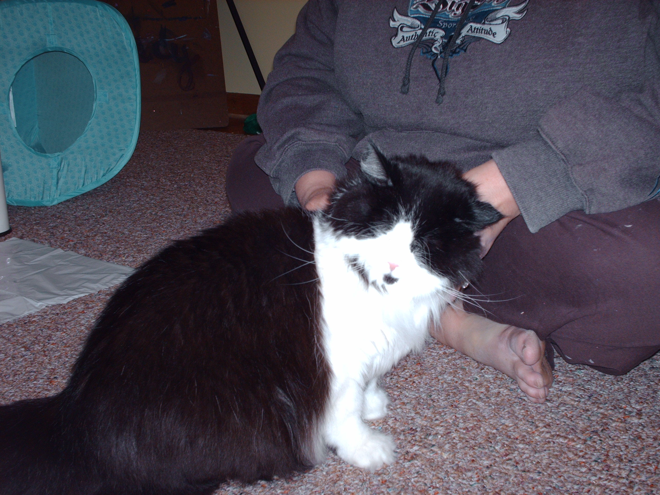 I apologize for not posting better pix. Kiara is definitely camera shy. She closed her eyes for many. She was hiding under the bed when I arrived, so I got down on all fours and softly called her name. She came out from under the bed and gave me head bumpies, then rubbed her face all over mine. She didn't want to be held but she loved being petted. And at one point, she even turned her tail to me as if to say "Look at what that dog did to me" and I shot the pix. (The woman said it's a stub but it clearly isn't. She's got a long tail and I'd say that 1/4 of it is gone.) Sorry, no Photobucket. It's been another long day and I just wanted to get pix of Kiara posted as quickly as possible. Thank you again, friends, for all your support. I just love a happy ending! Here she is: