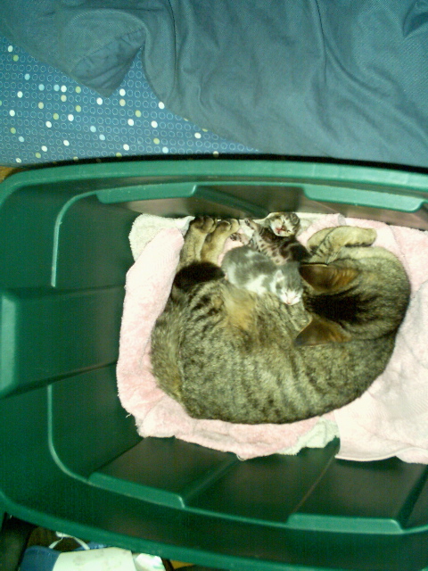 Anyways, this is new territory for me as I have never experienced this gift before except as a kid when I took it for granted. During the spring and summer I work 2 jobs, about 65 hrs a week. The kittens will be 3 weeks old next wednesday, so they will be weened fairly soon and also start needing food and water, also mobility will be become an issue.