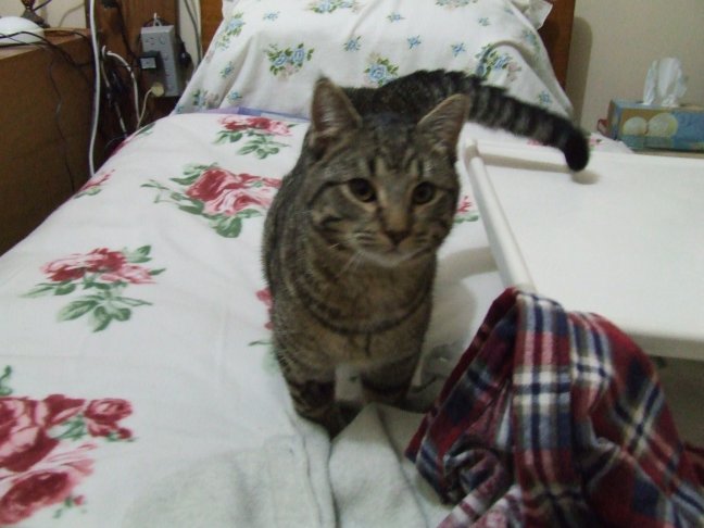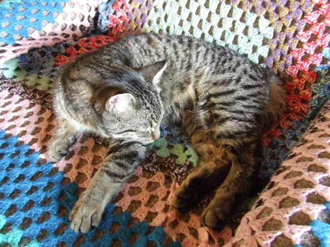 His name is Patrick Henry (couldn't decide so he got both) and he's a cryptorchid so his visit to the vet for desexing took longer and was messier than expected. The missing testicle couldn't be found so he has to go back in a couple of months for a checkup. When he is not sleeping or eating he follows me everywhere, I suspect his previous people got rid of him because of his condition. They offered me a replacement cat at the shelter but I can't let him go now, he's only been home less than 24 hours and already he has taken over.