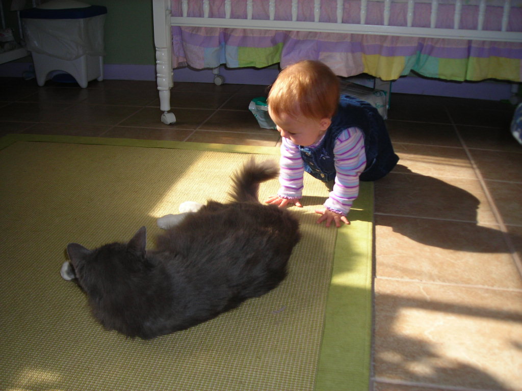 I rarely post in the cat forums, but thought I'd share a few cute pics of my animal lover in the making and our kitty Miss Mindy, AKA Miss Puss. Quinn loves her doggies and kitties, and they are all so tolerent of Quinn, who likes to pull fur harder then they really like (especially the kitties).