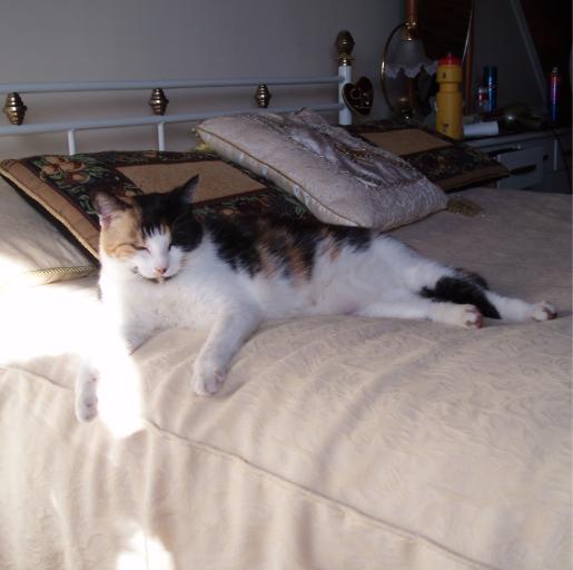 I was on the computer on PT the other day and i looked around and saw my little Ellie-Mae on the bed, posing, so i grabbed the camera, here she is folks, enjoy.![]()