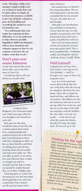 I wrote a letter about Jack as a response to an excellent article in Your Cat magazine (which I have a subscription too) I wanted to write about how wonderful he was, and about how people should adopt older cats because they are just as special and wonderful.