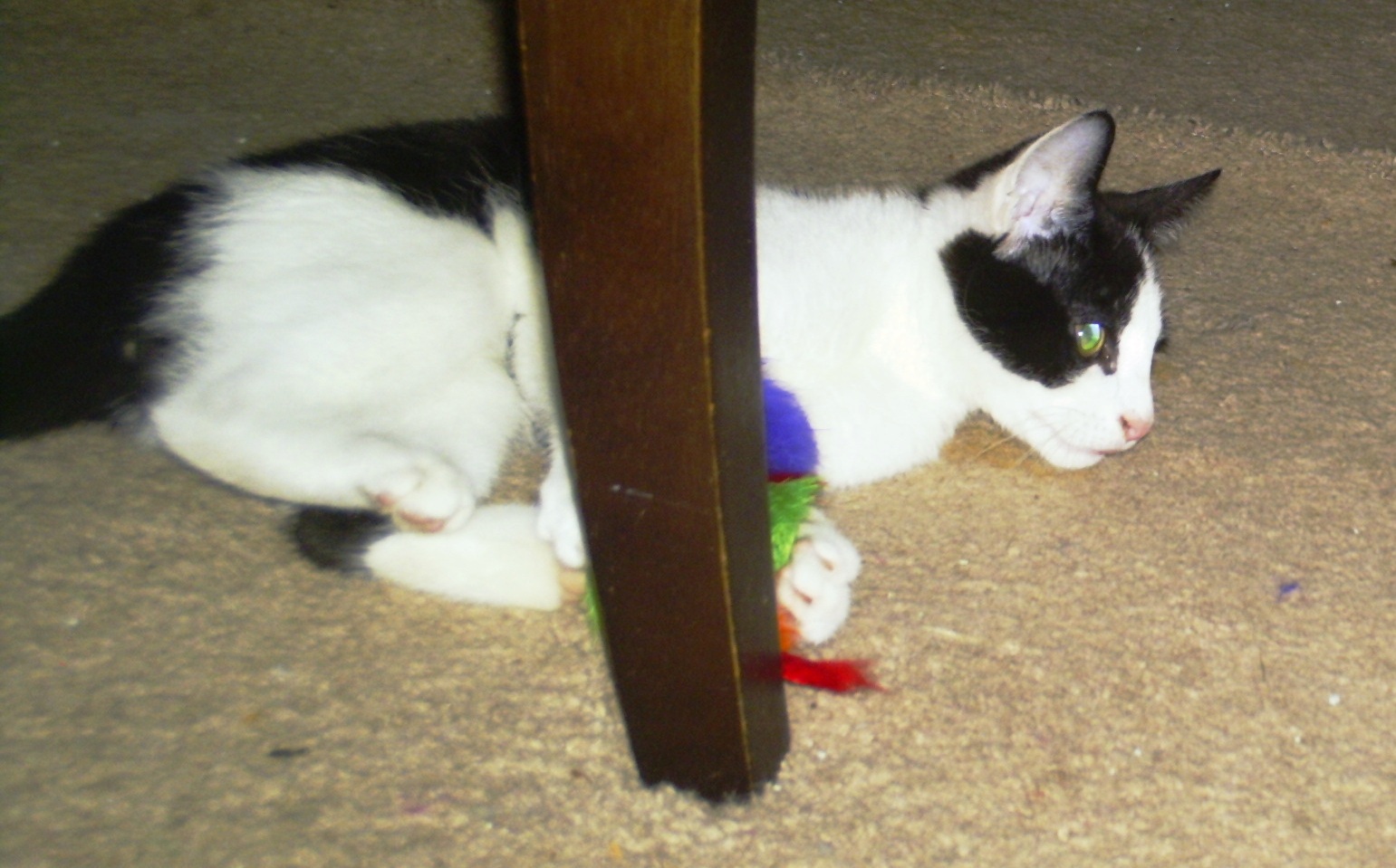 Osiris is a 12 week old kitten that came to Shirley's house that was supposed to be turned over to the local SPCA when they were free of the diease that just went through there.