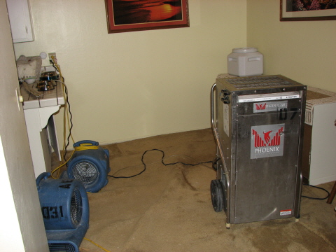 I'll attach 3 pictures showing the dehumidifiers and fan blowers in my hall bathroom and dining room and kitchen areas.