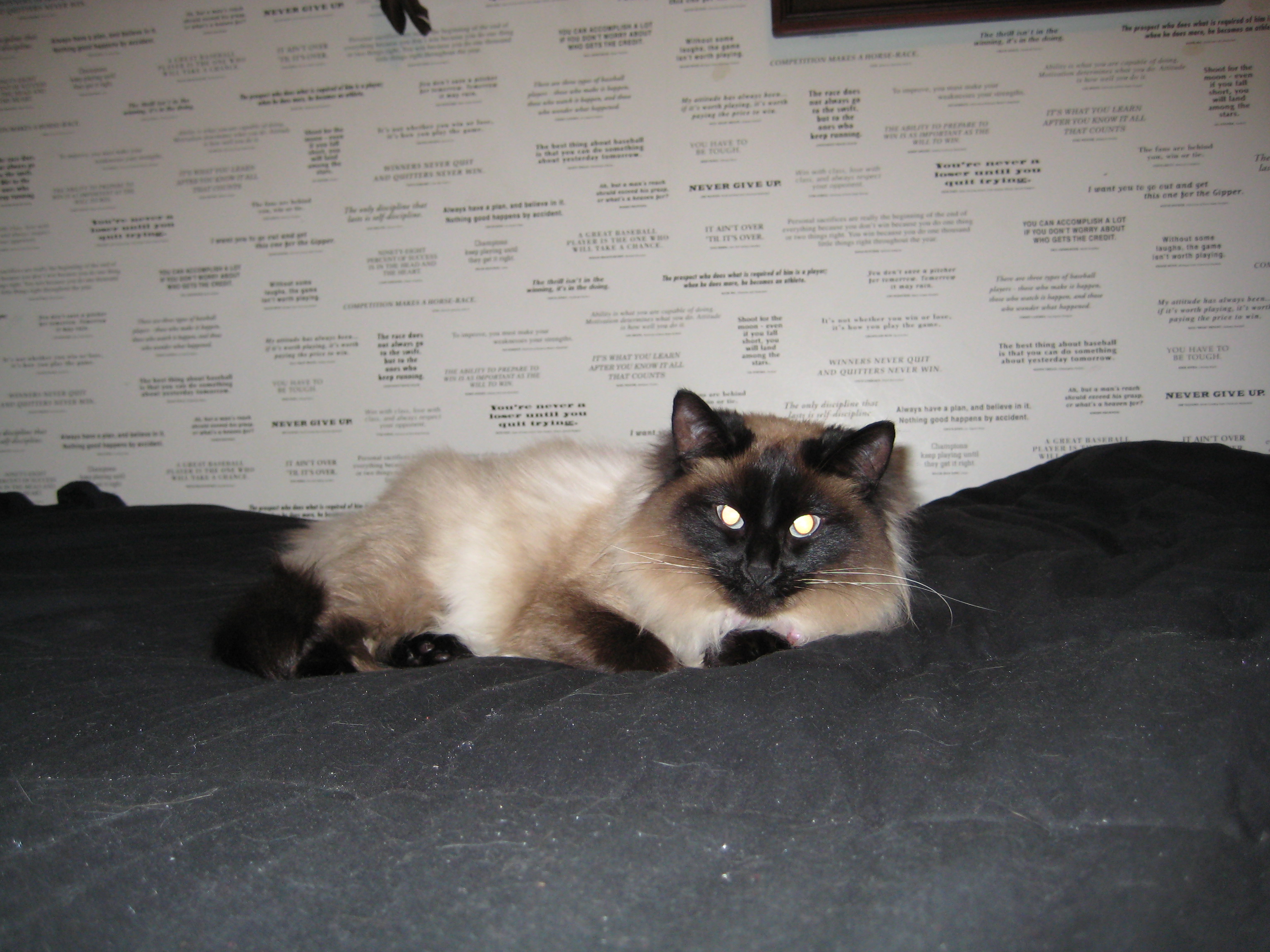 I think that Jazzy is a mix. As you say, she has that pointed face like my meezer Coco Puff. Her Himalayan Osiris died a couple of months ago, if you'll recall, and she's wanted another one ever since. This kitten is big, though she's not sure of her age.