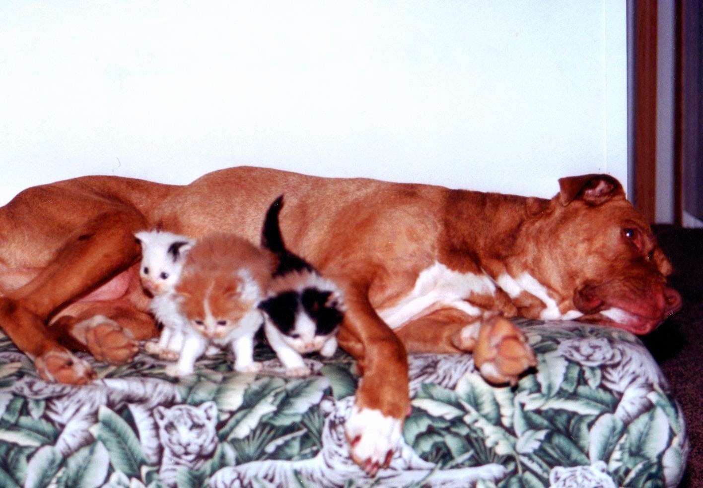 The first one is my dog I had as a kid, Roxxy, she thought she had to take care of every animal we brought in as you can see. The other one is of my puppy Harley... He likes to bite.. alot, lol!