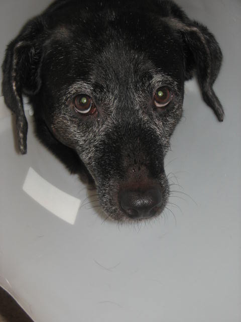 Since Cincy's surgery last week, she has been sentenced to at least two weeks in an e-collar. It doesn't slow her down much...using it as a batter ram to move us, Sadie or Spot, or even furniture out of the way.