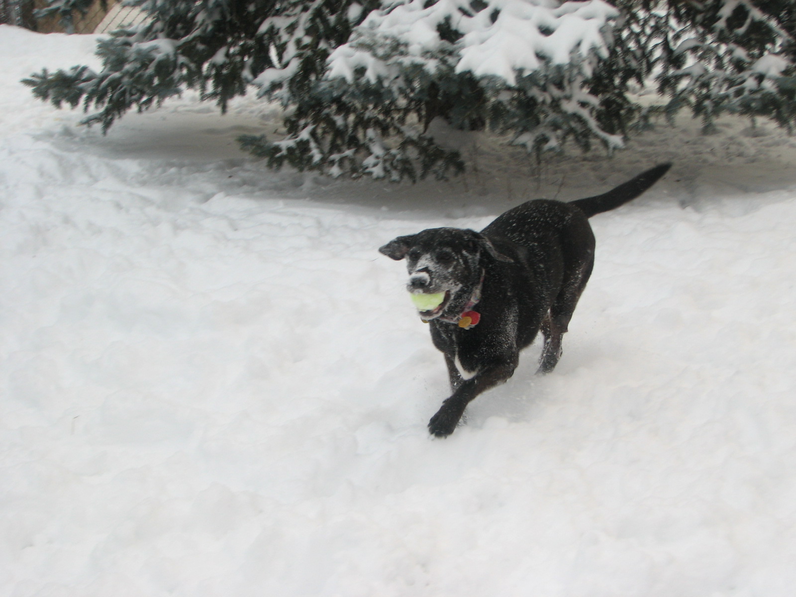 We did give her a bit of a reprive...some time to play ball in the snow. Of course, the other dogs are enjoying the snow too!
