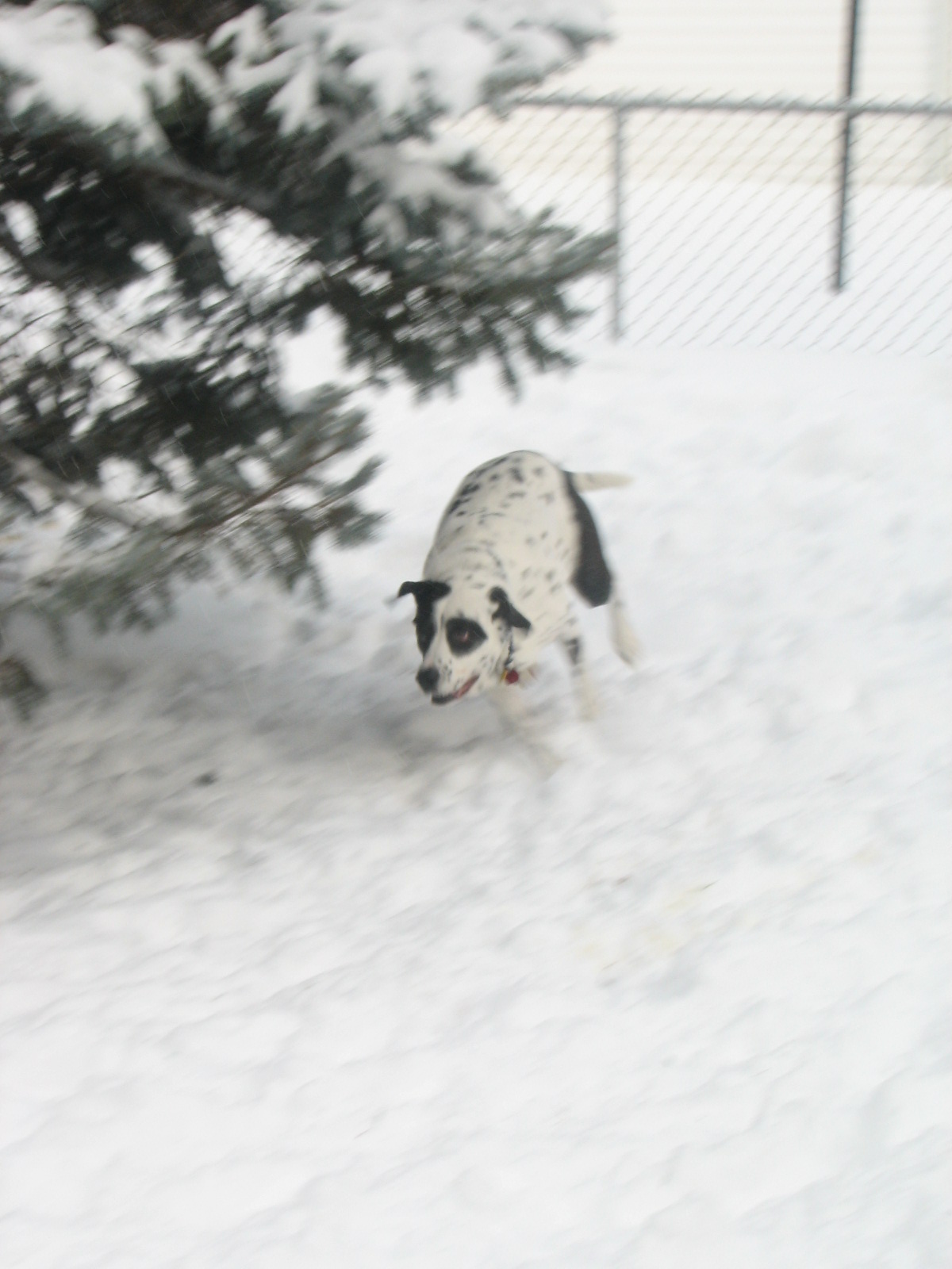 You are right, Spot doesn't get hit with much of the snow. And what little does hit him, flies right off as he races around the yard!