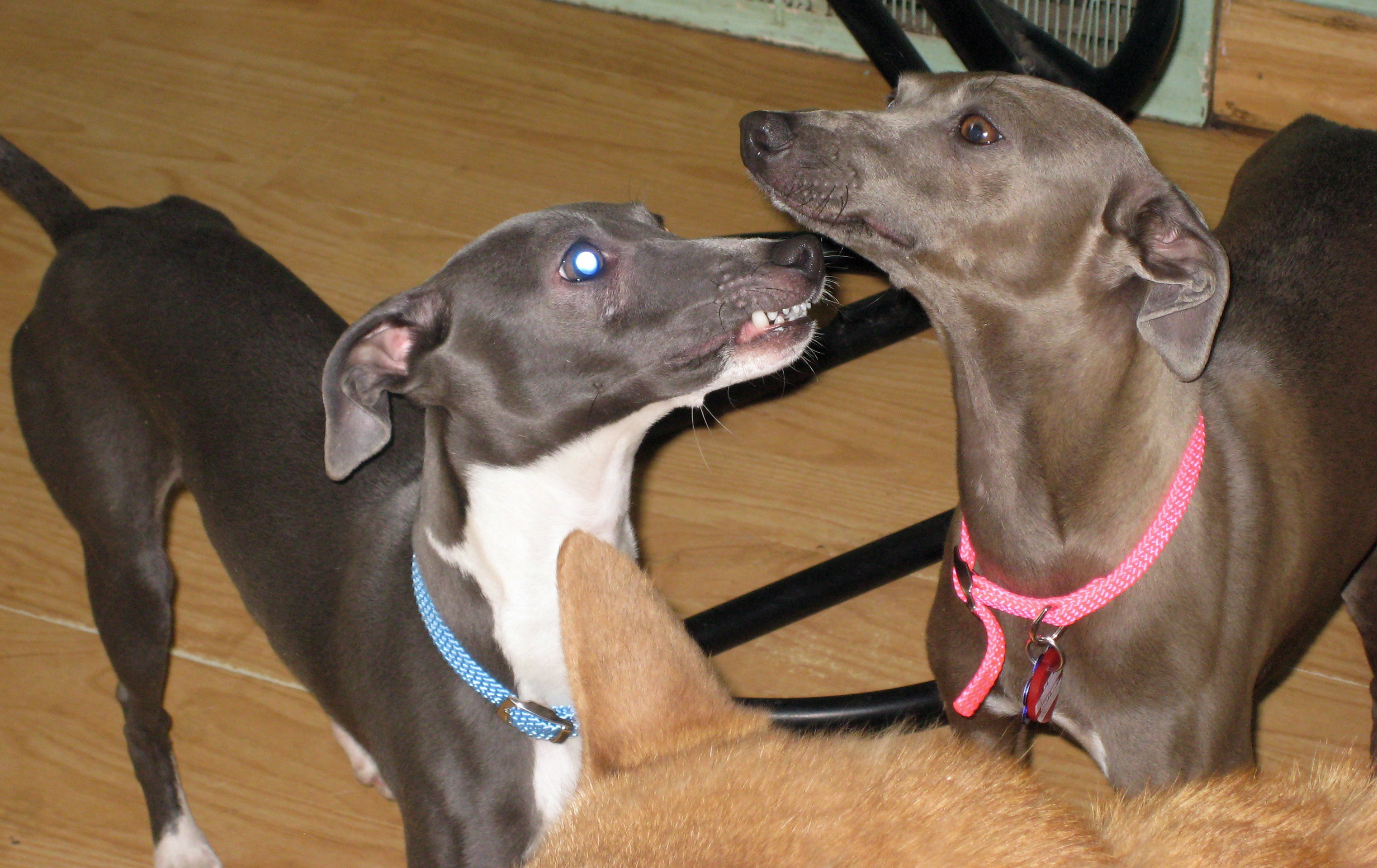 Wow, word gets around. A week after I got Gia, a woman shows up at my boarding kennel and says, "I heard you take these dogs.", and shoves a IG puppy at me. Ummmm .... sure, I guess I do, now.