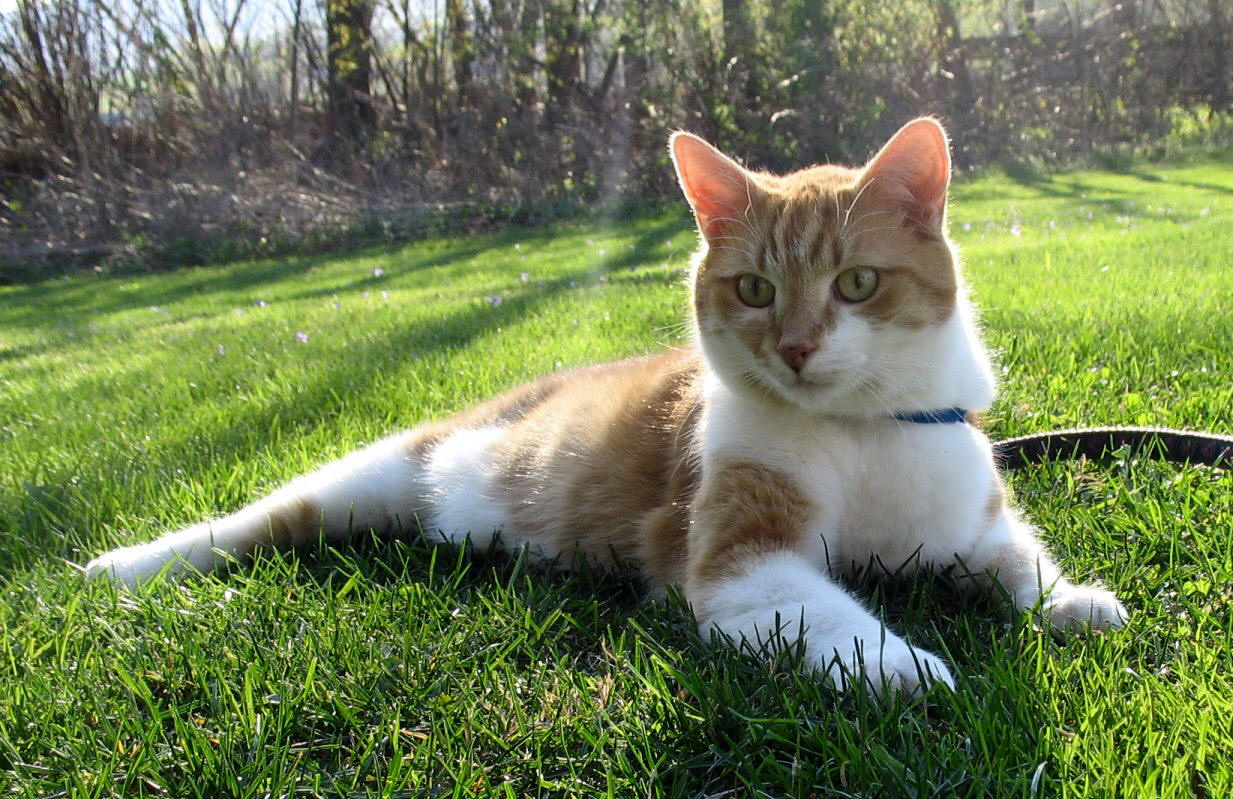 First pic he is sniffing the shrub where a neighbor cat stopped to rub on the branch earlier.
