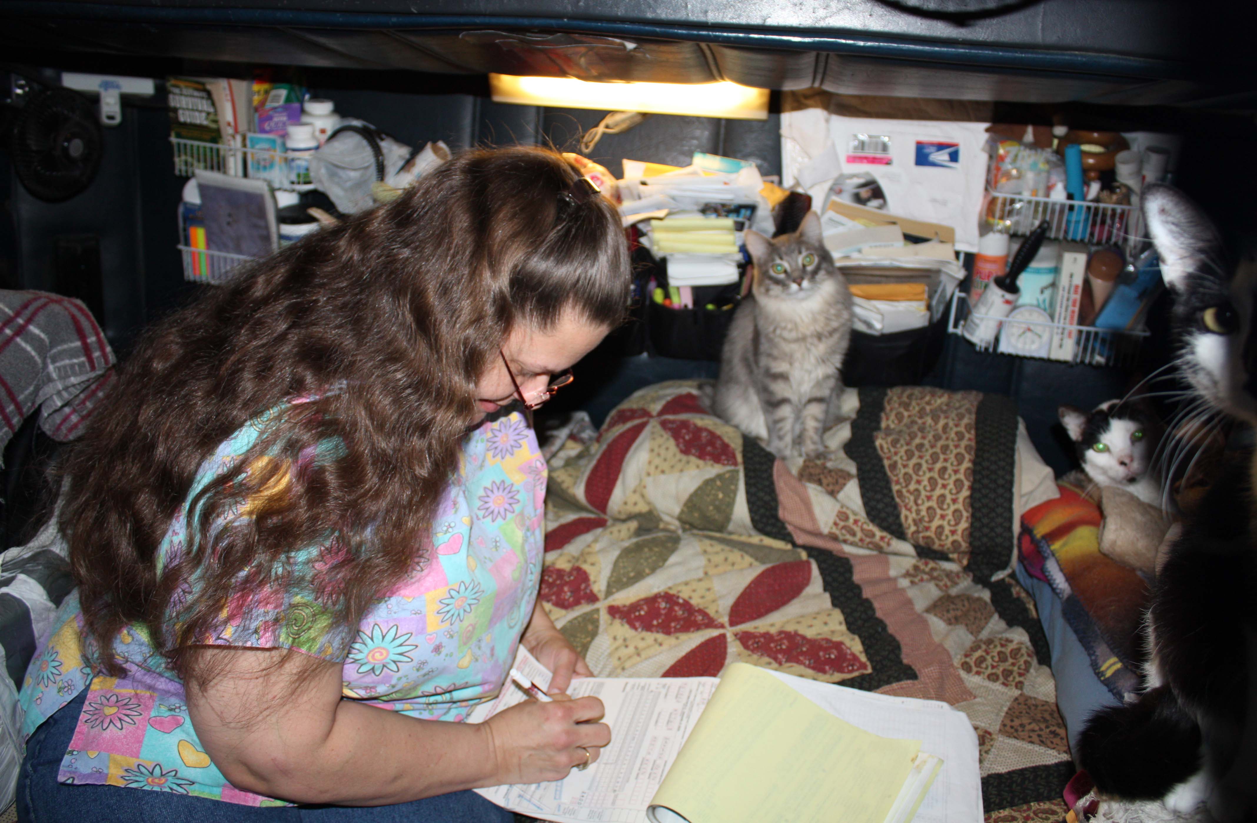 I've been on the streets for so long that I can't even recall when I ever had a home. I'm not even sure of my age; I think maybe 5 or years old. I've lost my tail and a few teeth and I've got a lot of battle scars to show for all the street fights that I've been in, hence my name Narley, except that I spell it w/out the G. I really am pretty gnarley looking but life is tough on the streets for feral tom cats. At one point I was so sick w/an upper respiratory infection and a very bad case of ear mites. I was cold, hungry and just plain worn out and I was ready to give up. Luck was w/me one day, though, because I wandered up to an old house that is also a real estate office and I could smell good food and I knew there were other cats in there. The kind lady who works there took me in and gave me the first meal that I'd had in ages. Then she took me to her vet for tests, shots, neutering and treatment to get rid of my URI and ear mites.