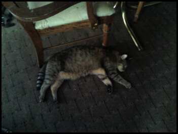 This looks like my cats.It's been in the mid 90's here the last 2 days and I don't have any a/c. Luckily my 3 long haired cats have lion cuts. Pearl still seems very active though.
