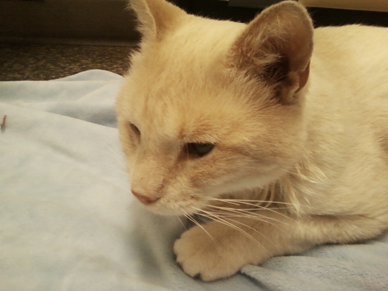 I went to pick up Ziggy at 11:10 a.m. to take him to his vet appointment at 11:20 a.m. and I got him in the cat carrier, he hates the cat carrier but did very well, I petted him the whole ride. Sadly, when I stopped at a stop sign I noticed Ziggy wasn’t looking good and he had some yellowish color to his skin on the top of his head and when he meowed I saw that his gums were yellow. I knew right away that this wasn’t going to be good and that he was jaundice.