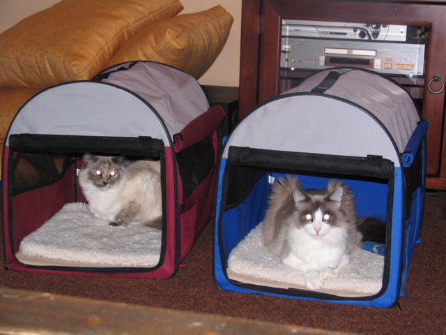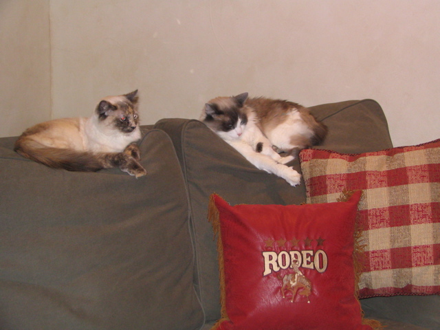 I have two cats that are brother & sister. They are 5 years old. I found them, along with their 5 siblings, when they were only one day old. The mother had either abandoned them or had been killed. At the time we were living in California and a friend of ours ran the Santa Barbara Animal Rescue. He searched the neighborhood for 8 hours looking for the mother cat. When she never returned he showed me how to bottle feed them. Given that there were seven kittens the task of feeding them consumed the whole first night. The next day, after the vet checked them out, he gave four of the kittens to another volunteer and I kept three to bottle feed. They grew up to be beautiful, loving cats. I found a home for one and kept the other two. They made the trip with us from California to Texas one year ago.