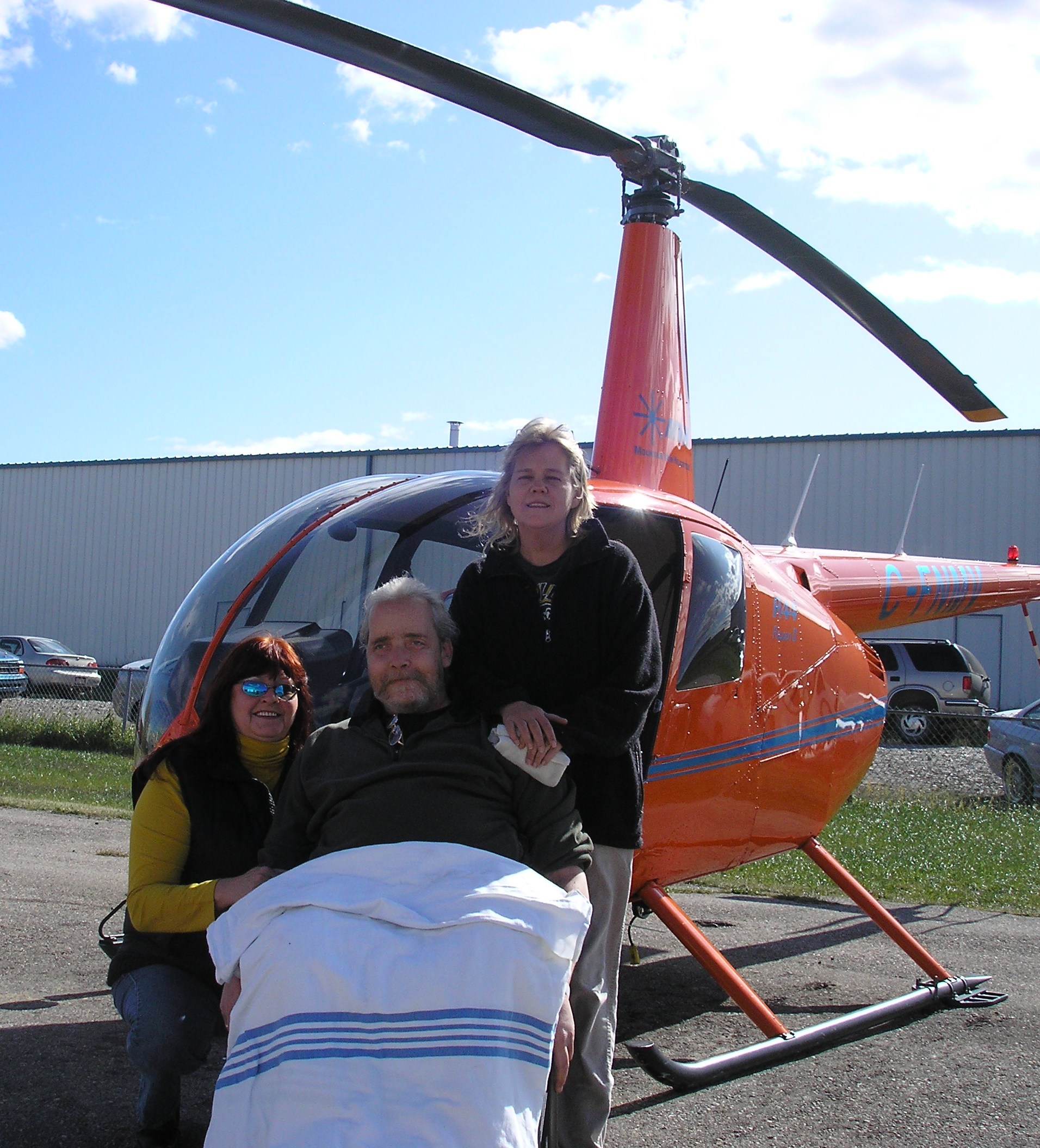 Today he was still well enough to get a 1 hour helicopter ride and really enjoy it! Got to see the mountains and countryside west of here. Weather was perfect - the lakes would have looked like bright aquamarine jewels!