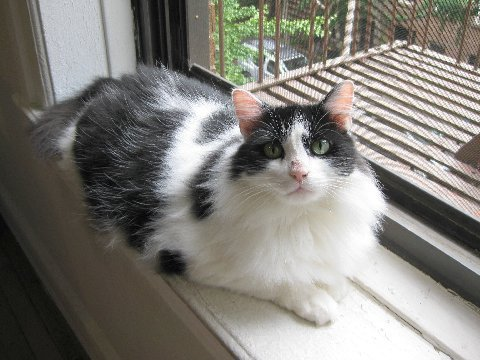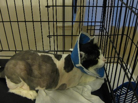My name is Dahlia. I'm a 4 year old spayed female cat. A building super found me in an empty apartment after my former humans were evicted. The super took me to the city's high kill shelter on 110th Street in Manhattan. I caught a cold there and the day before I was scheduled to be euthanized I was adopted by a nice young lady. I got better and things were going pretty well in my new home which I shared with mom, dad, and a toddler until my new family moved to a no pets building just 2 months after adopting me. They found a new family for me in Queens, but after a few months my Queens family left me at the Brooklyn kill shelter with no explanation. Rescuers saw what a nice and gentle girl I am and they felt that after being passed from home around that I deserved a real FOREVER home. Foster mom took me out of the shelter but within a few days I lost hair on my nose and the vet did a test and told us that I have ringworm - it's not a worm but a fungus that lives on the surface of the skin. The vet shaved my long thick panda coat leaving me with just Ugg boots on my paws and a lion tuft on the tip of my tail. I was moved into a cage because my condition is contagious and there are two other cats in my foster home.